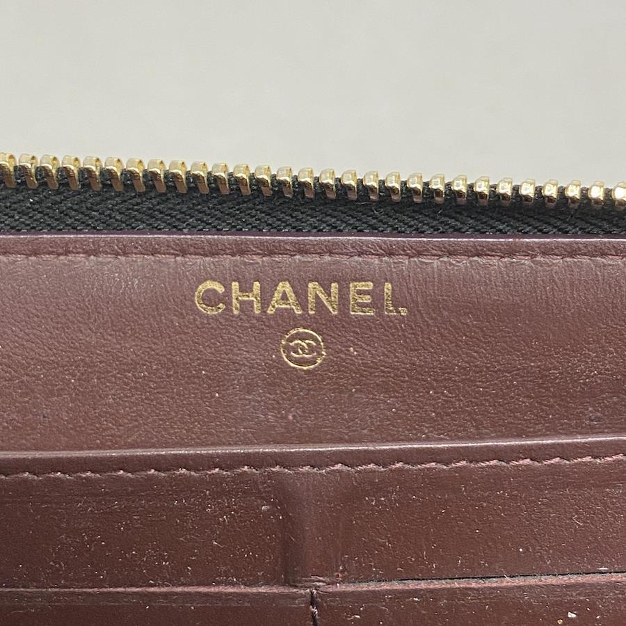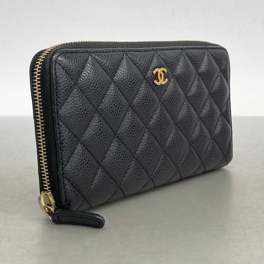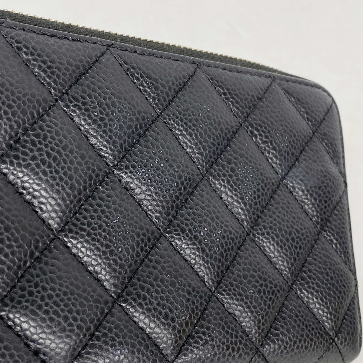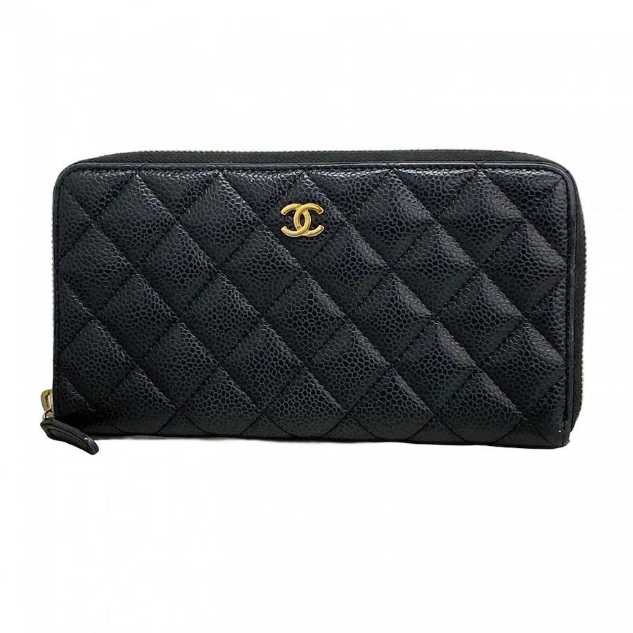 【5id4495】シャネル 長財布 マトラッセ キャビアスキン ブラック ゴールド金具【中古】レディース