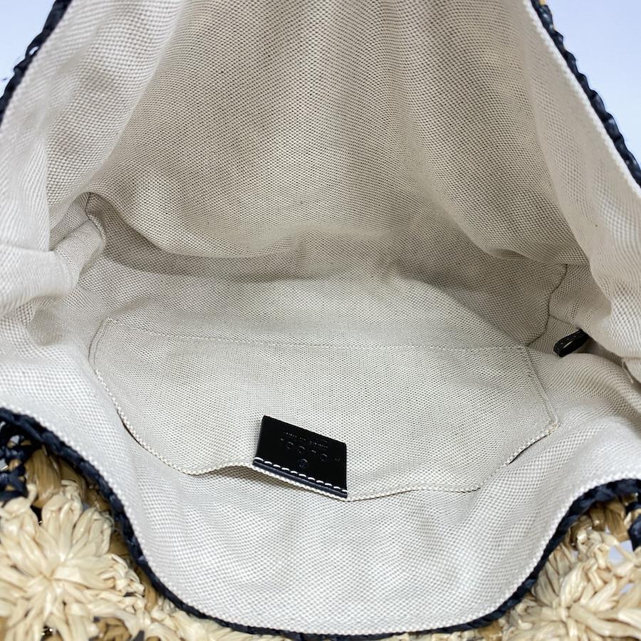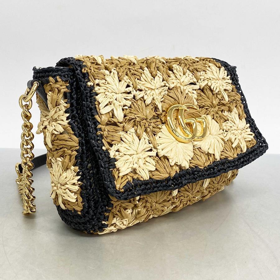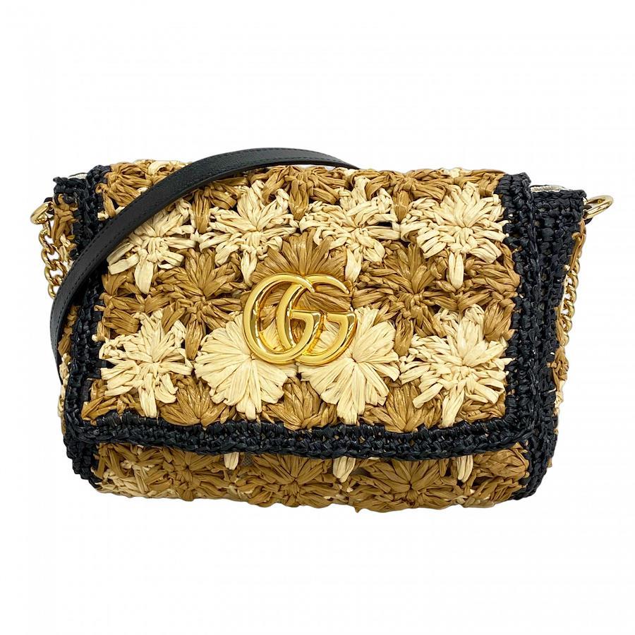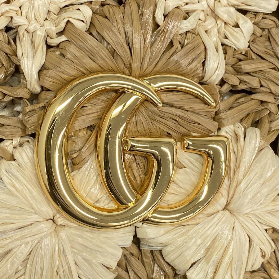 【5id4512】グッチ ショルダーバッグ GGマーモント 574433 ラフィア ブラック ブラウン ゴールド金具【中古】レディース