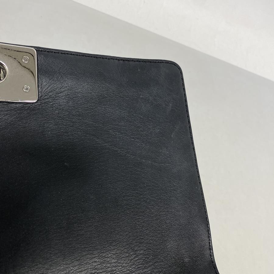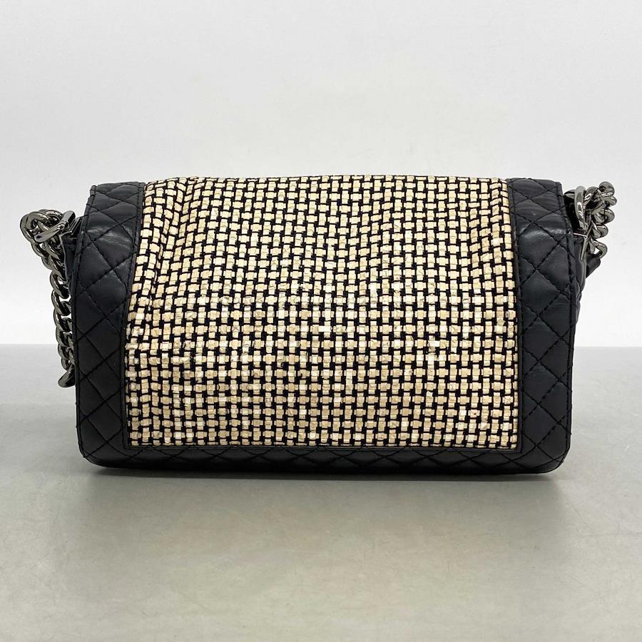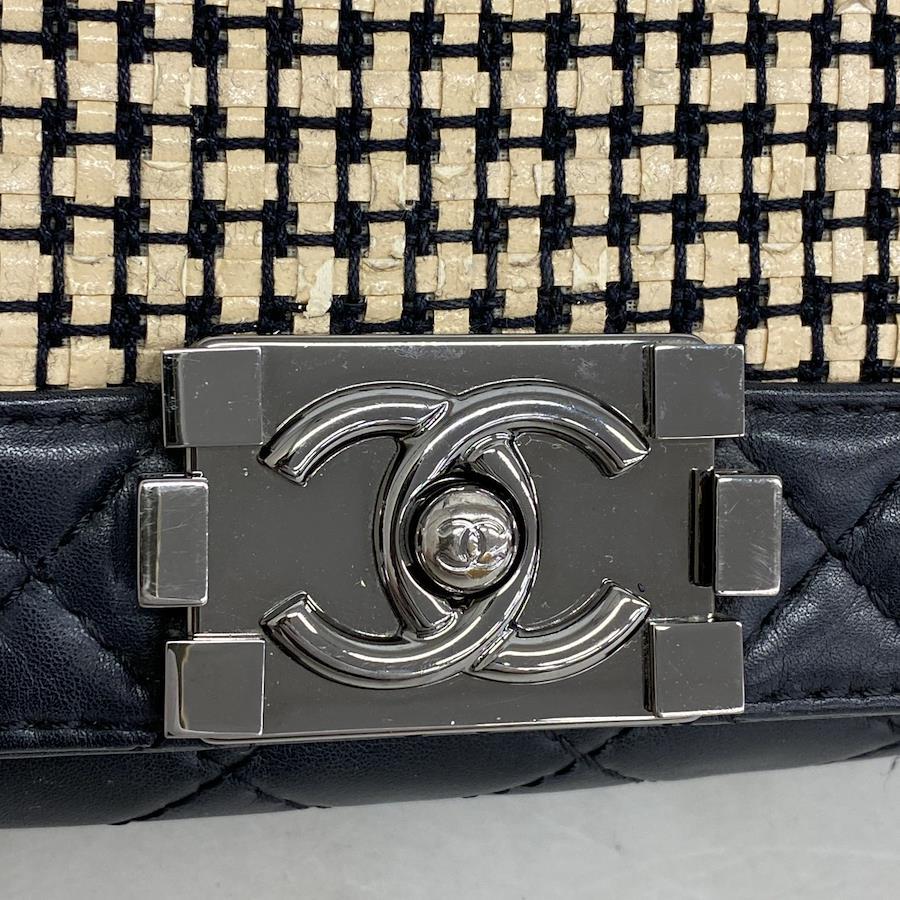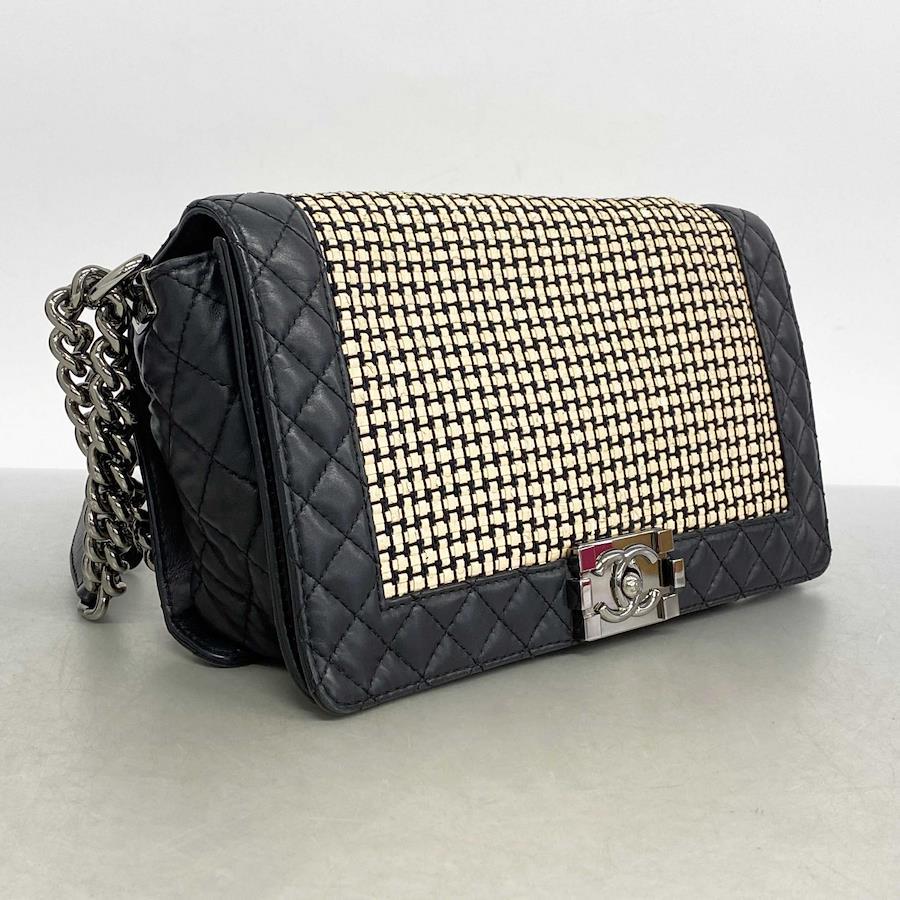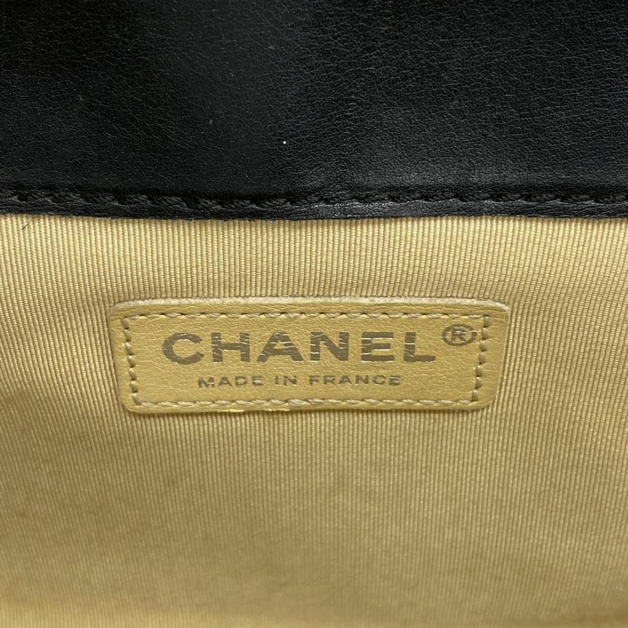 【5id4526】シャネル ショルダーバッグ ボーイシャネル ラムスキン ブラック ベージュ シルバー金具【中古】レディース