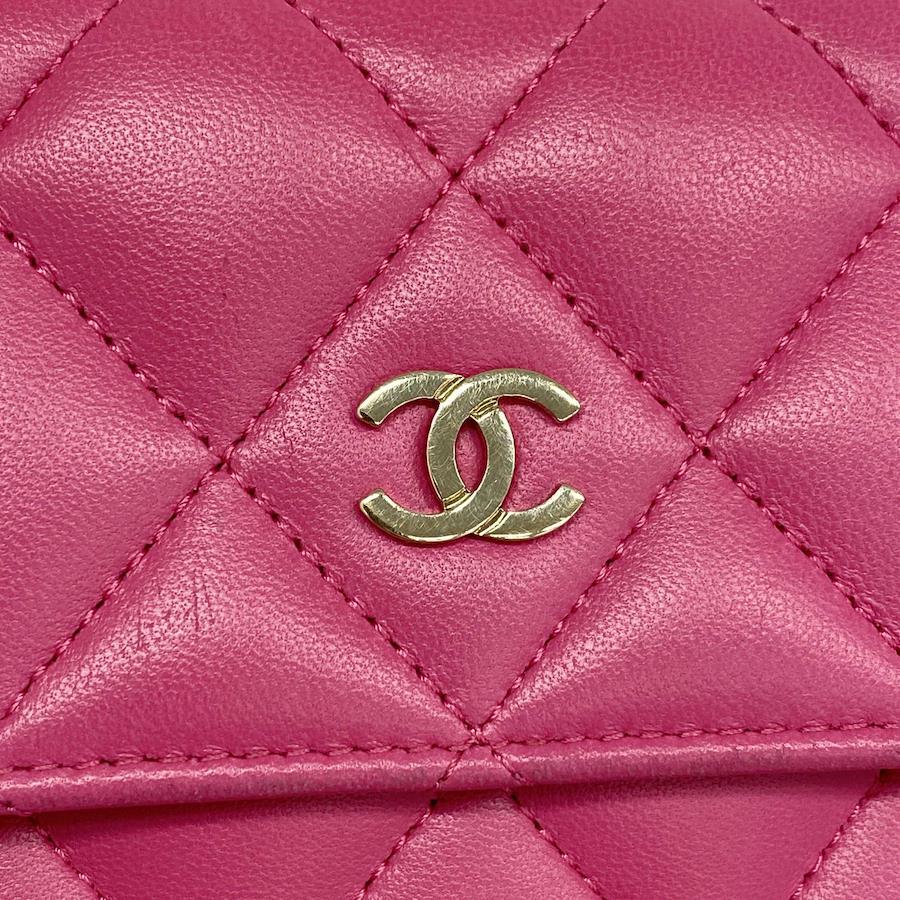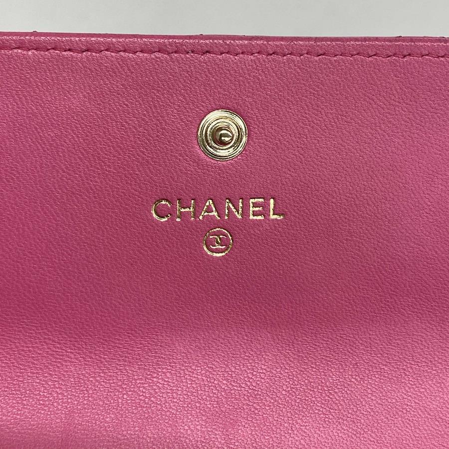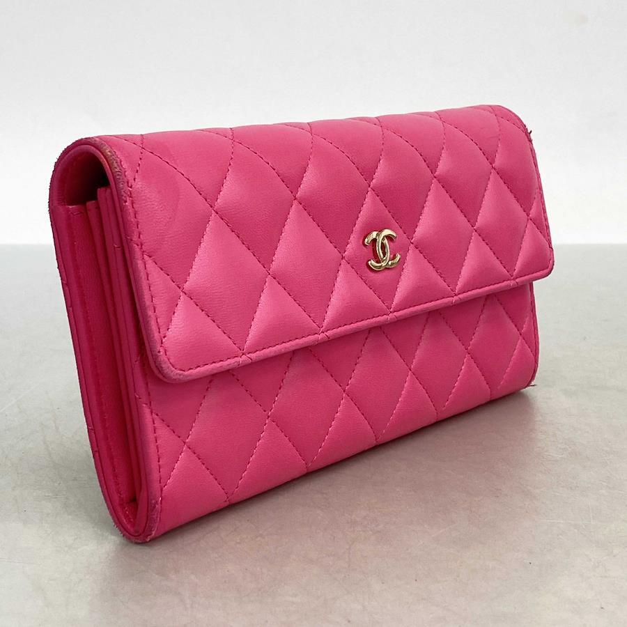 【5id4568-h】シャネル 長財布 マトラッセ ラムスキン ピンク ゴールド金具【中古】レディース