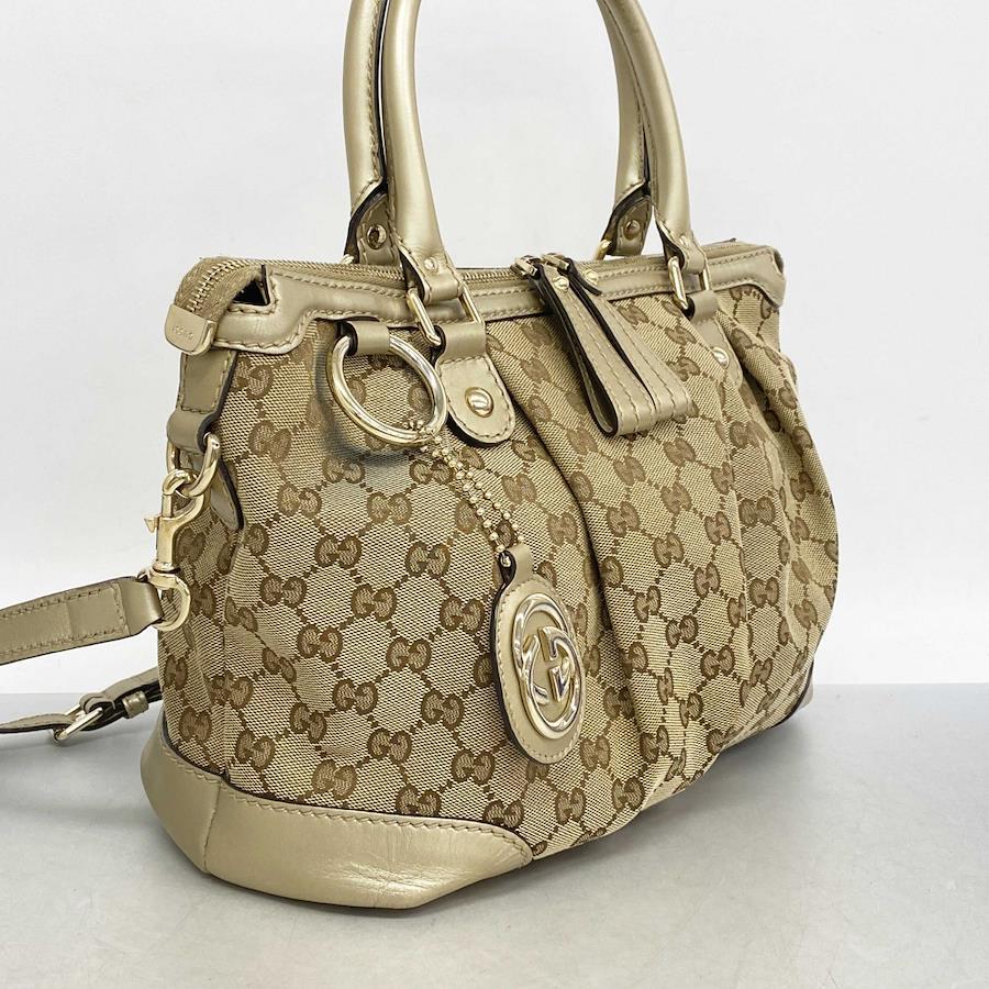 【5id4581-h】グッチ ハンドバッグ GGキャンバス 247902 キャンバス ブラウン ゴールド金具 2wayバッグ【中古】レディース