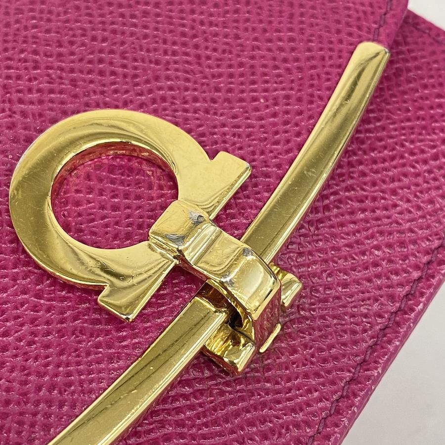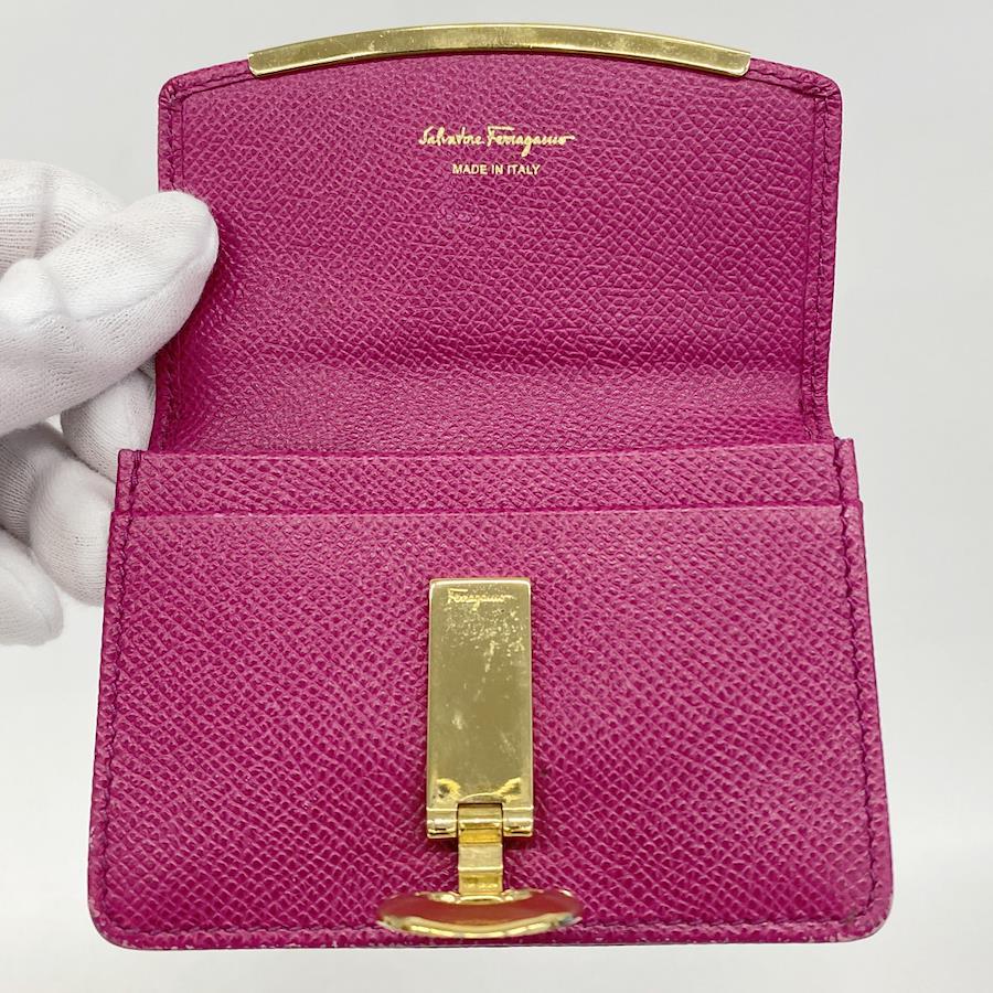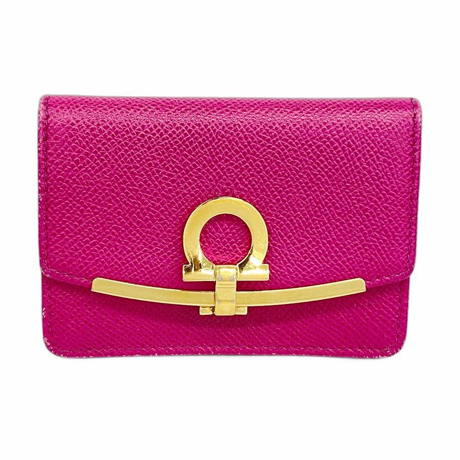 【5id4625-h】サルヴァトーレフェラガモ カードケース ガンチーニ レザー ピンク ゴールド金具【中古】レディース