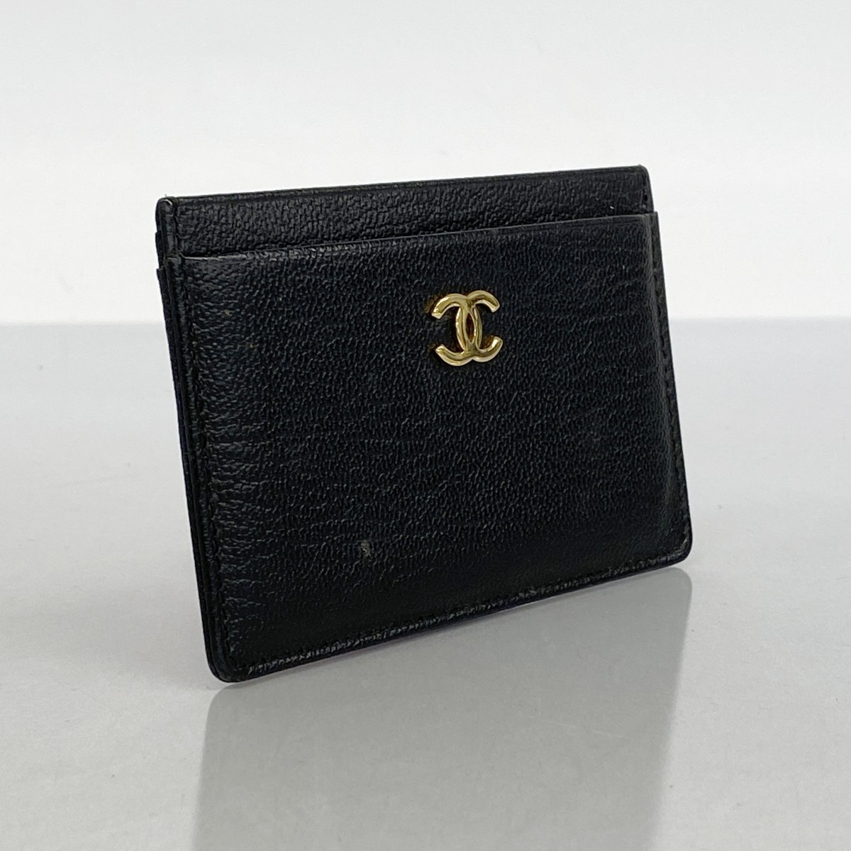 【5id4688-h】シャネル カードケース レザー ブラック ゴールド金具【中古】レディース