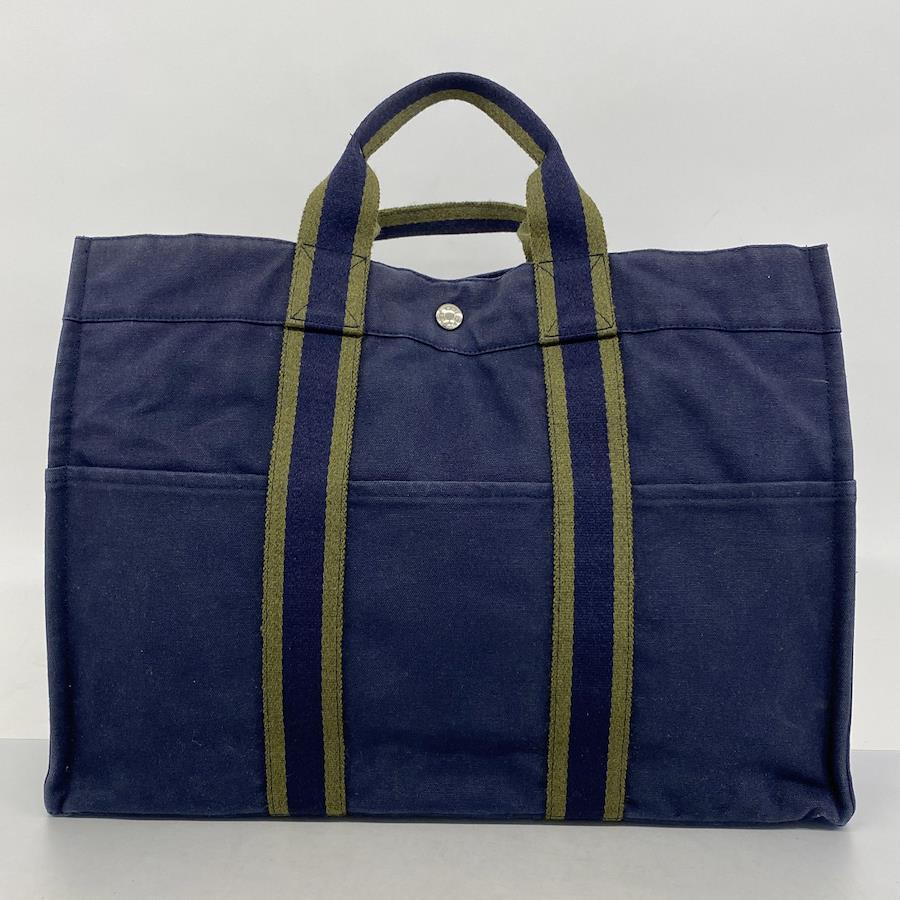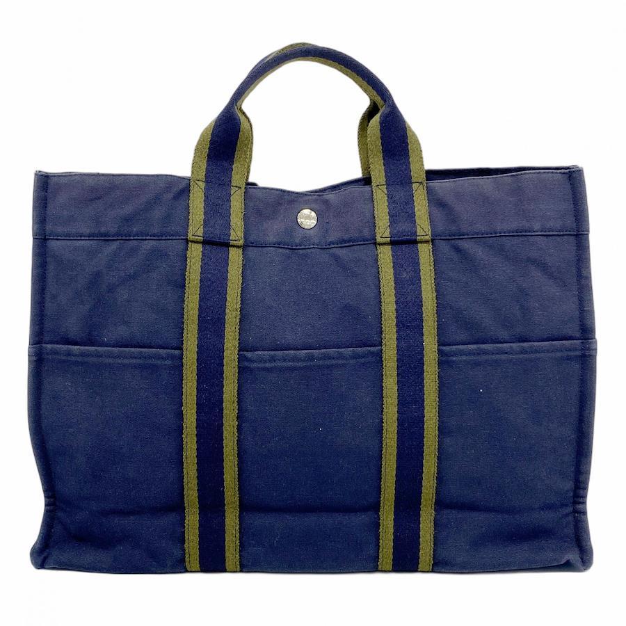 【5id4717-h】エルメス トートバッグ フールトゥMM キャンバス ネイビー シルバー金具【中古】メンズ レディース ユニセックス