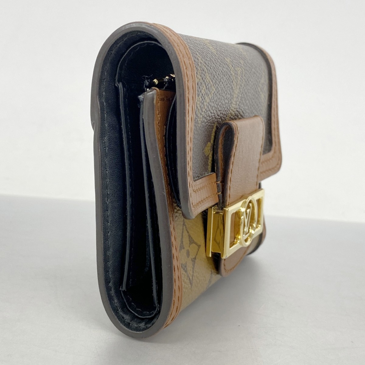 【5id4749】ルイヴィトン 三つ折り財布 モノグラム・リバース ポルトフォイユドーフィーヌコンパクト M68725 ブラウン【中古】レディース