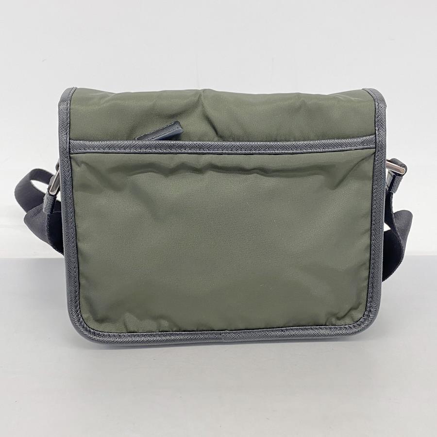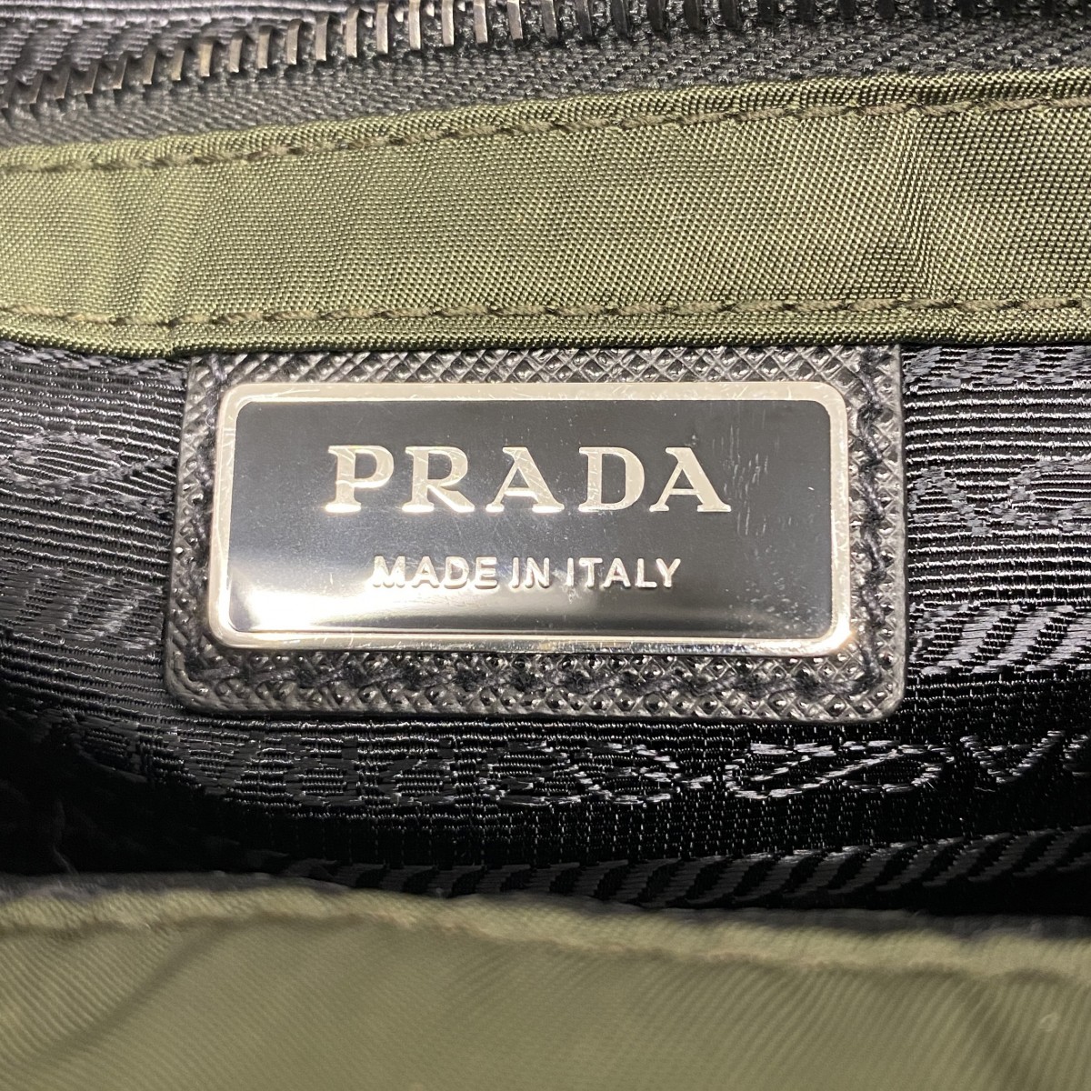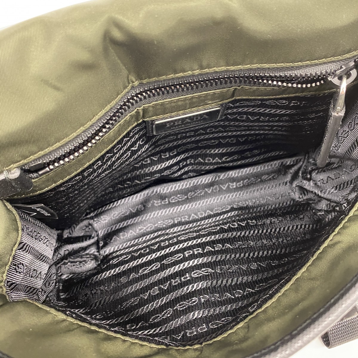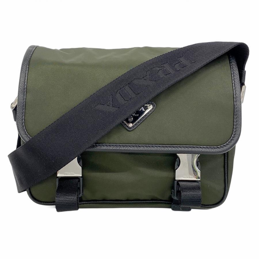 【5id4758-h】プラダ ショルダーバッグ ナイロン グリーン ブラック シルバー金具【中古】メンズ