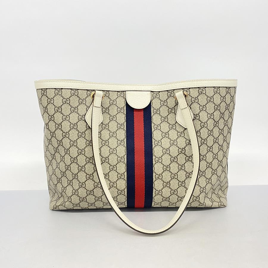 【5id4759-h】グッチ トートバッグ オフィディア 631685 PVC ブラウン ホワイト ゴールド金具【中古】レディース