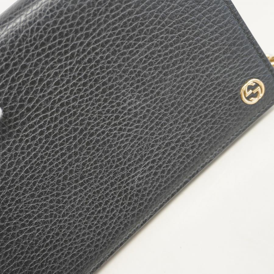 【5id4860-h】グッチ ショルダーウォレット インターロッキングG 466506 2067 レザー ブラック シャンパンゴールド金具【中古】レディース