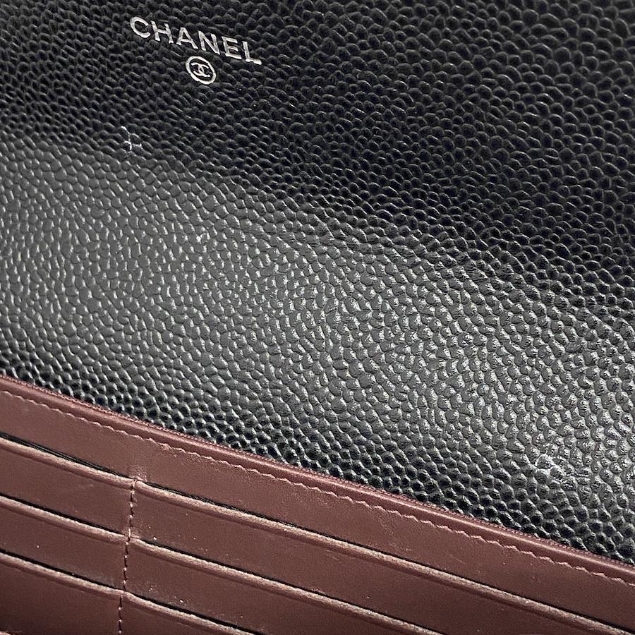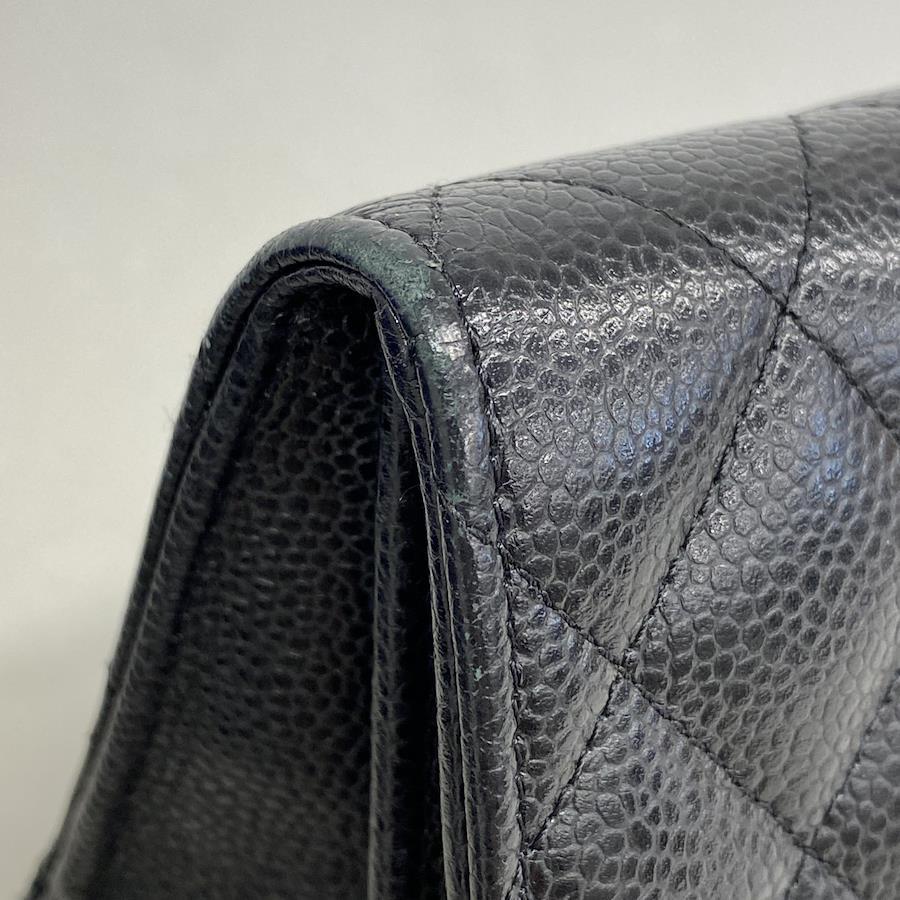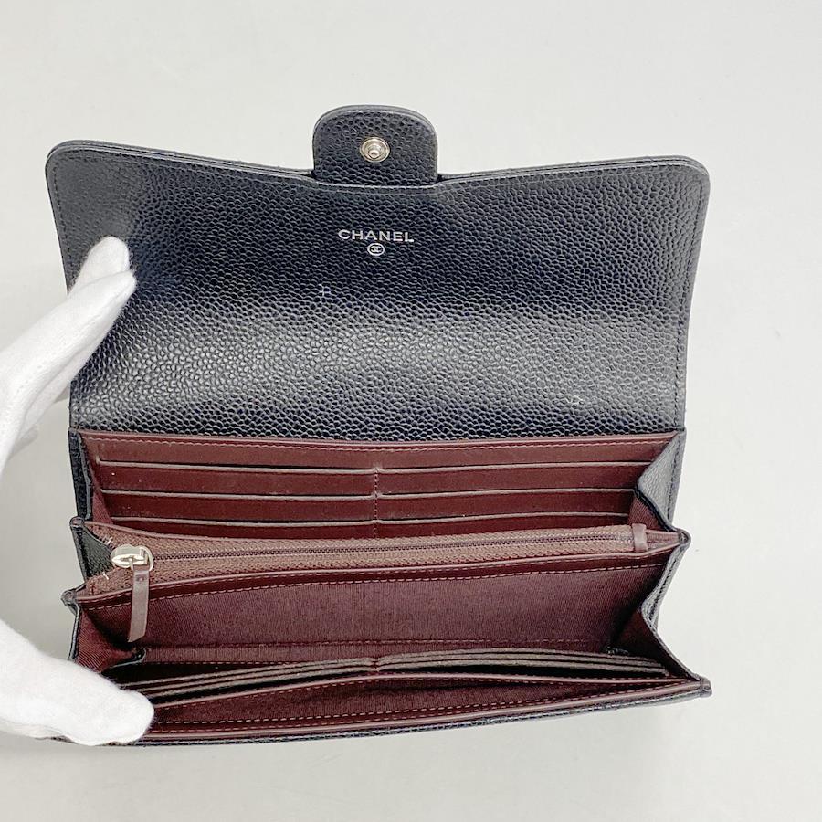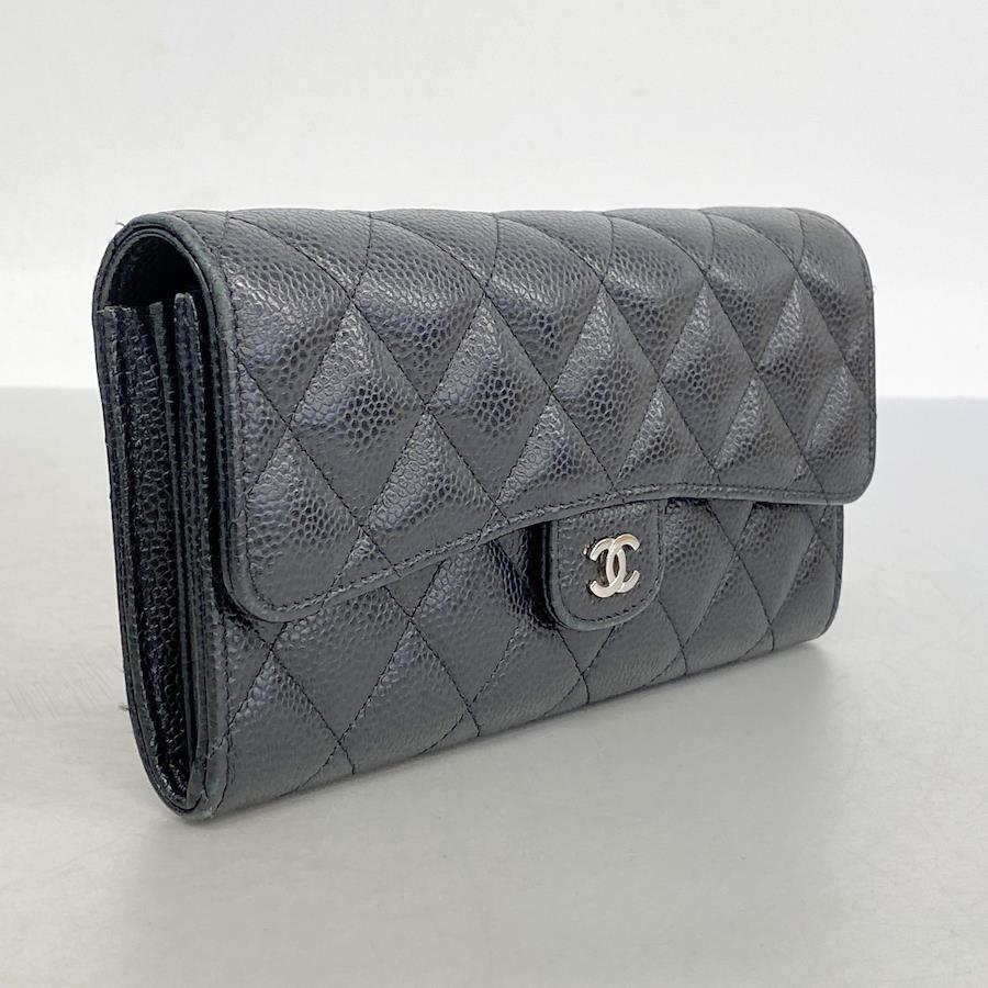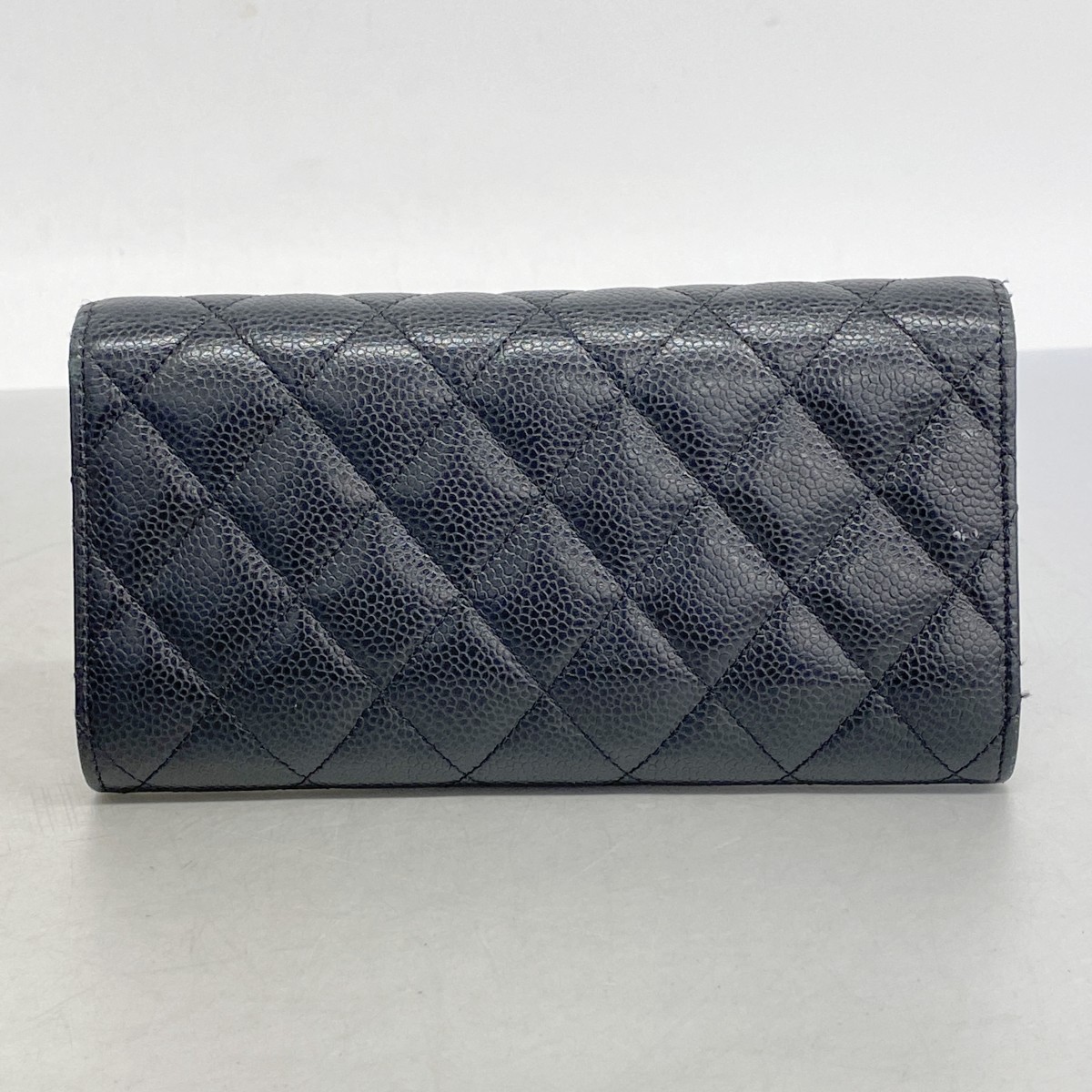 【5id4920-h】シャネル 長財布 マトラッセ キャビアスキン ブラック シルバー金具【中古】レディース