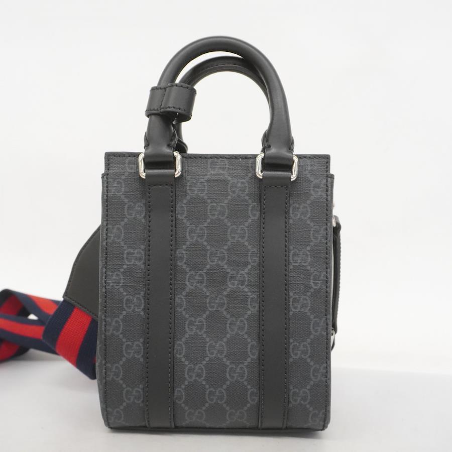 [5id4937-h] Gucci GG Supreme/Sherry Line Handbag 696010 PVC Black with Silver Hardware, 2-Way Bag [Pre-owned] Men's