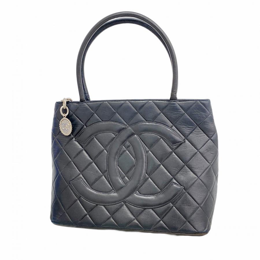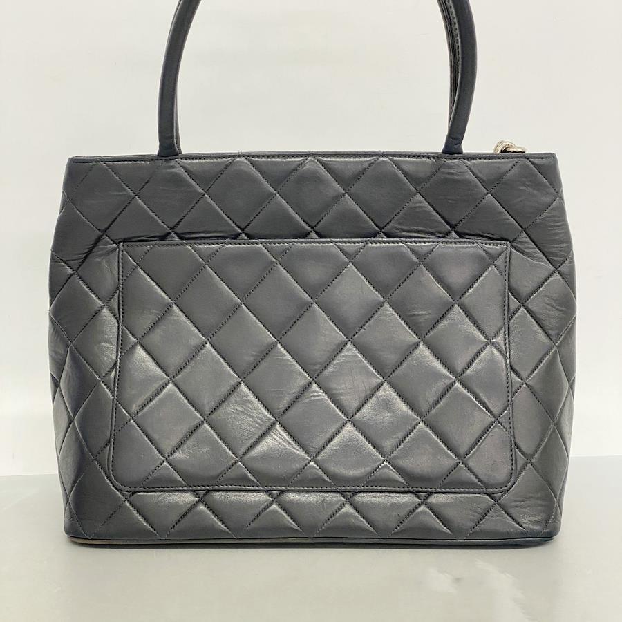 【5id4962】シャネル トートバッグトート ラムスキン ブラック シルバー金具【中古】レディース
