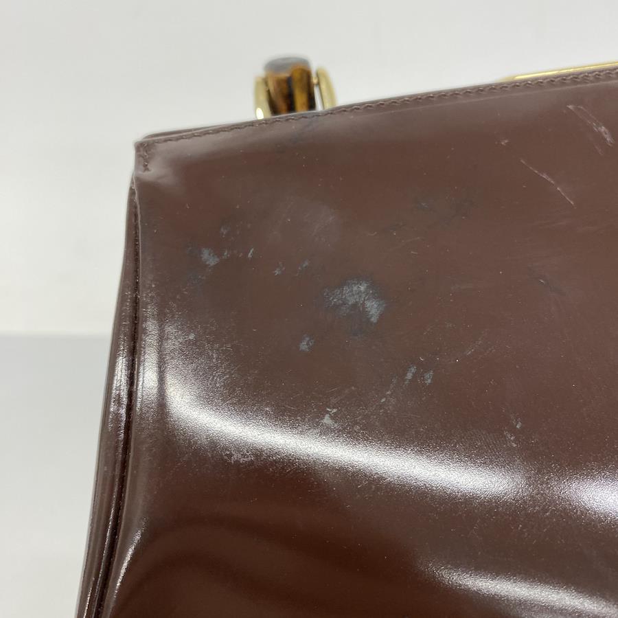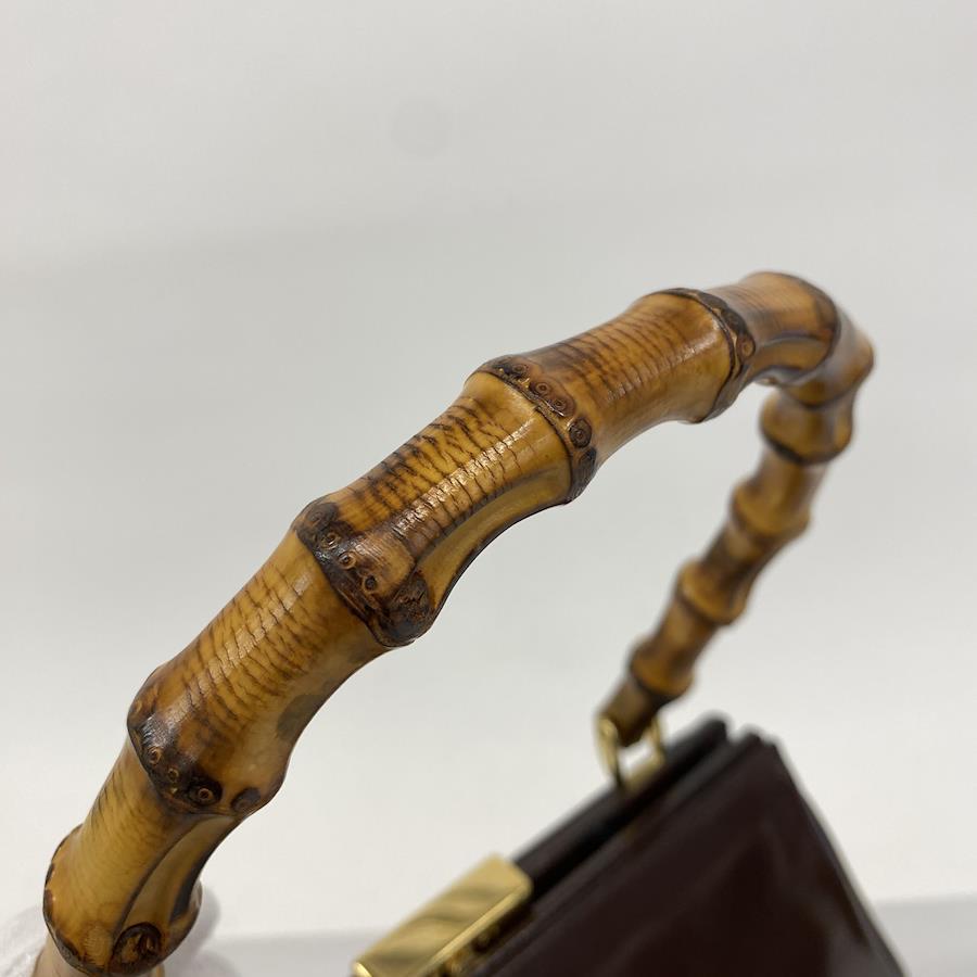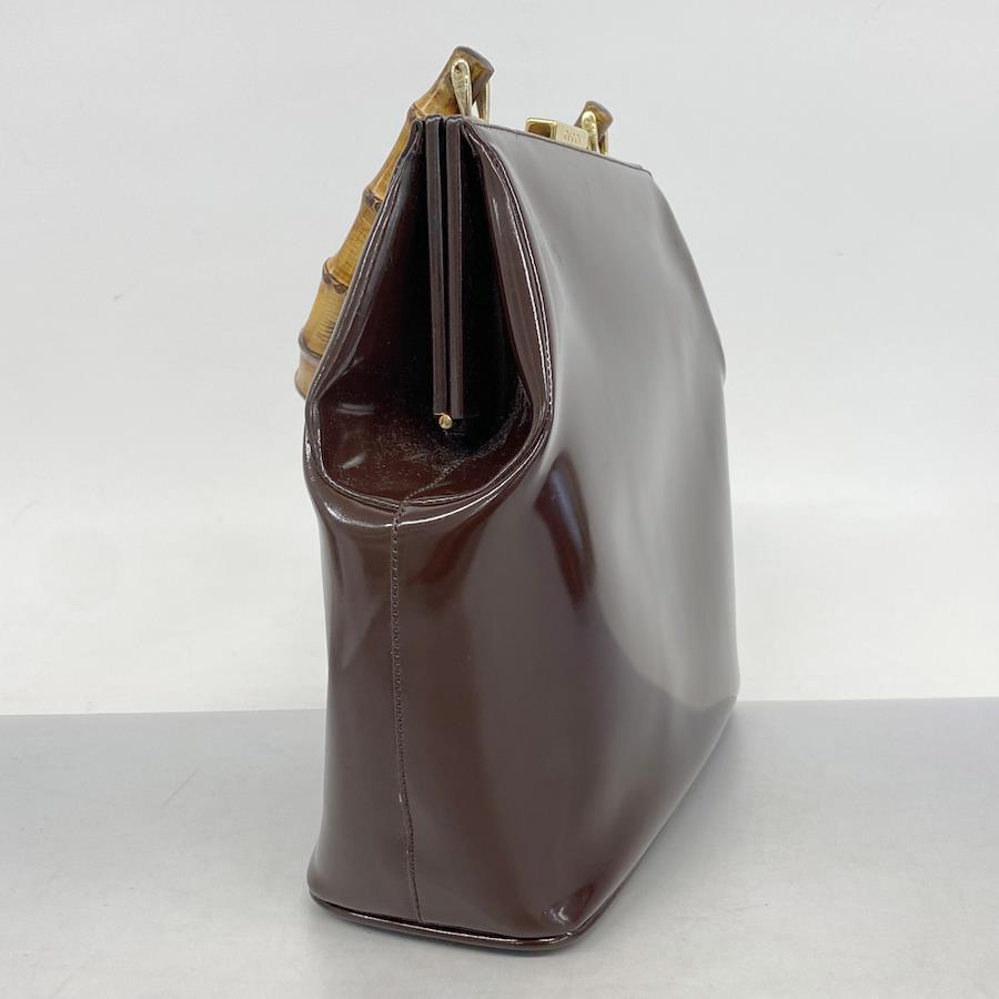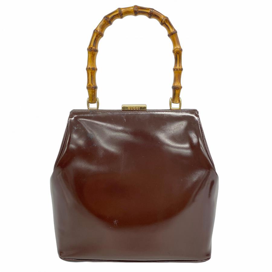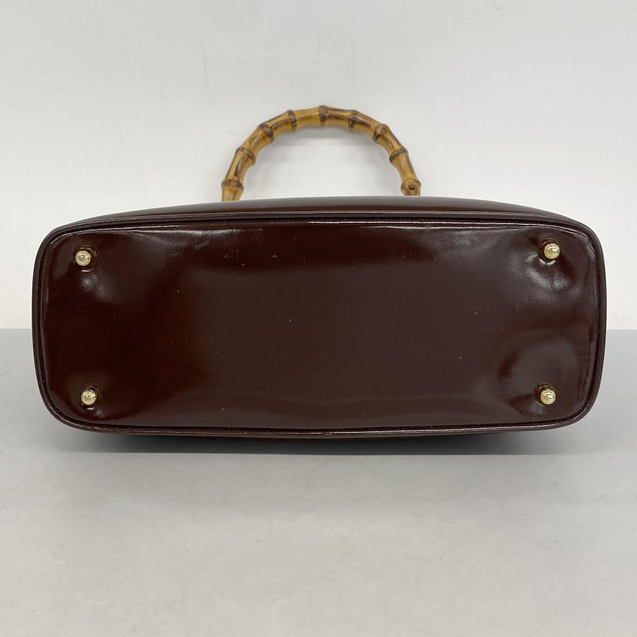 【5id5003】グッチ ハンドバッグ バンブー 000 781 0295 パテントレザー ブラウン ゴールド金具【中古】レディース