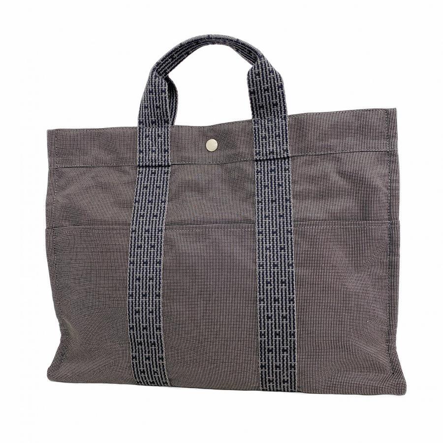 【5id5057】エルメス トートバッグ エールラインMM キャンバス グレー シルバー金具【中古】メンズ レディース ユニセックス
