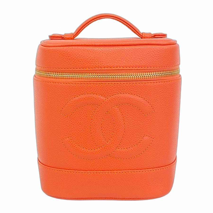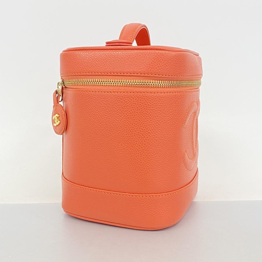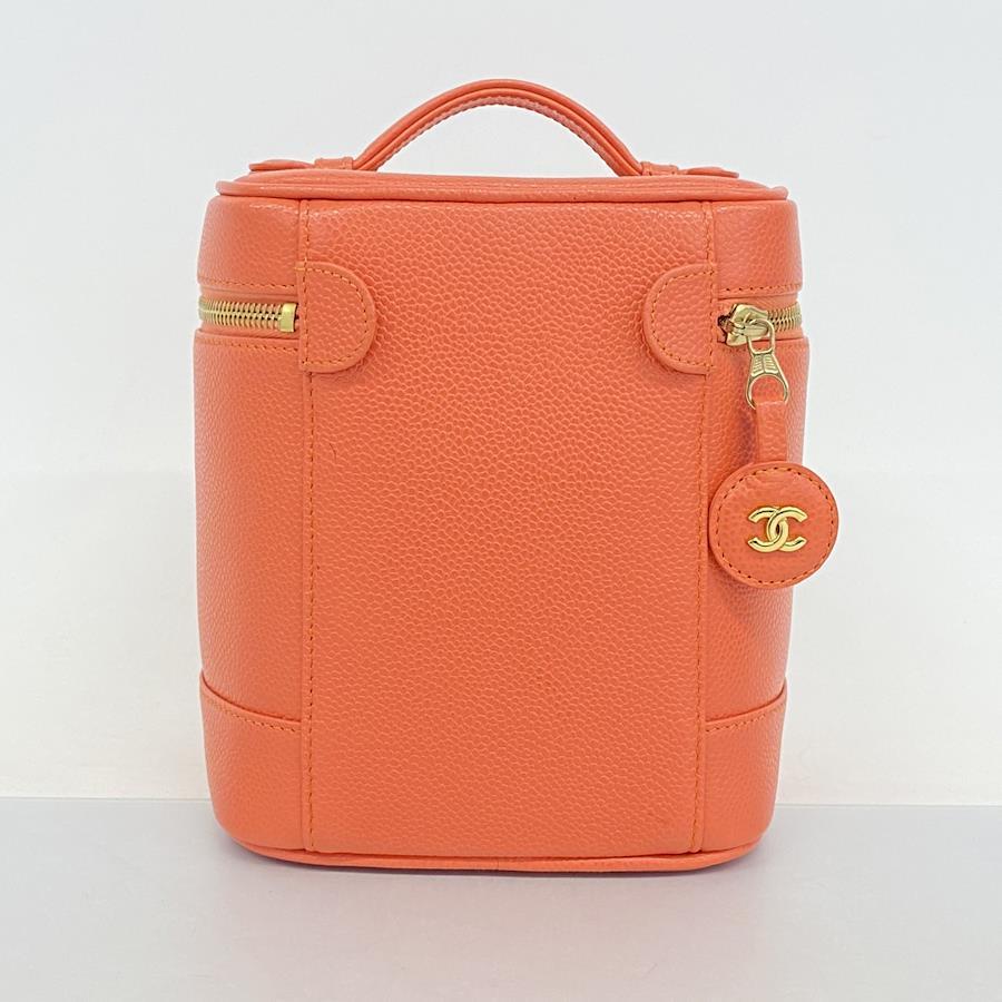 【5id5184】シャネル バニティバッグ キャビアスキン サーモンピンク ゴールド金具【中古】レディース