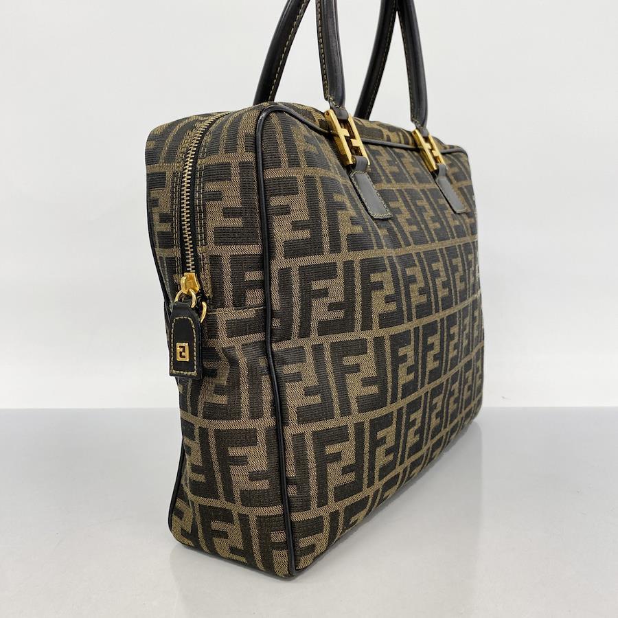 【5id5204】フェンディ ビジネスバッグ ズッカ ナイロンキャンバス ブラウン ゴールド金具【中古】レディース