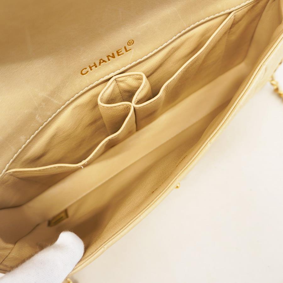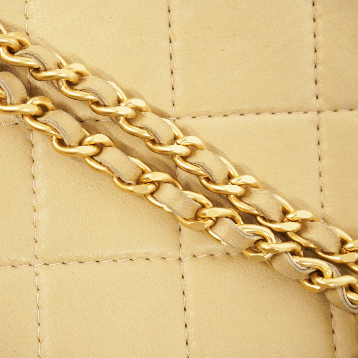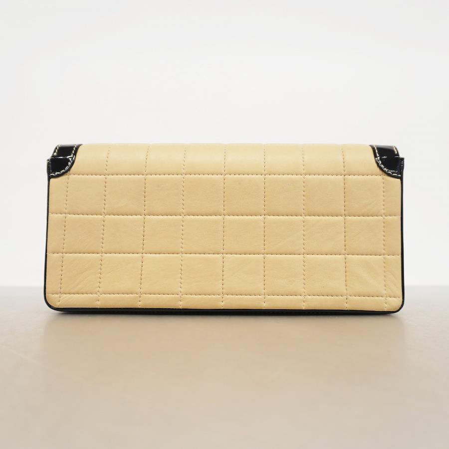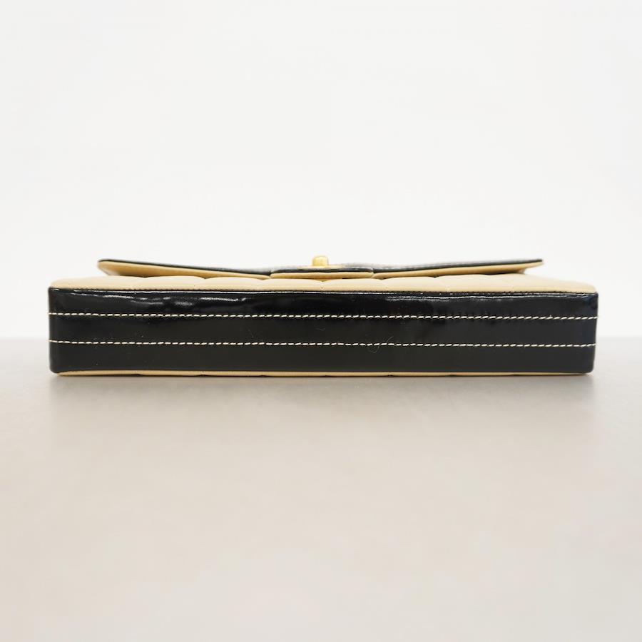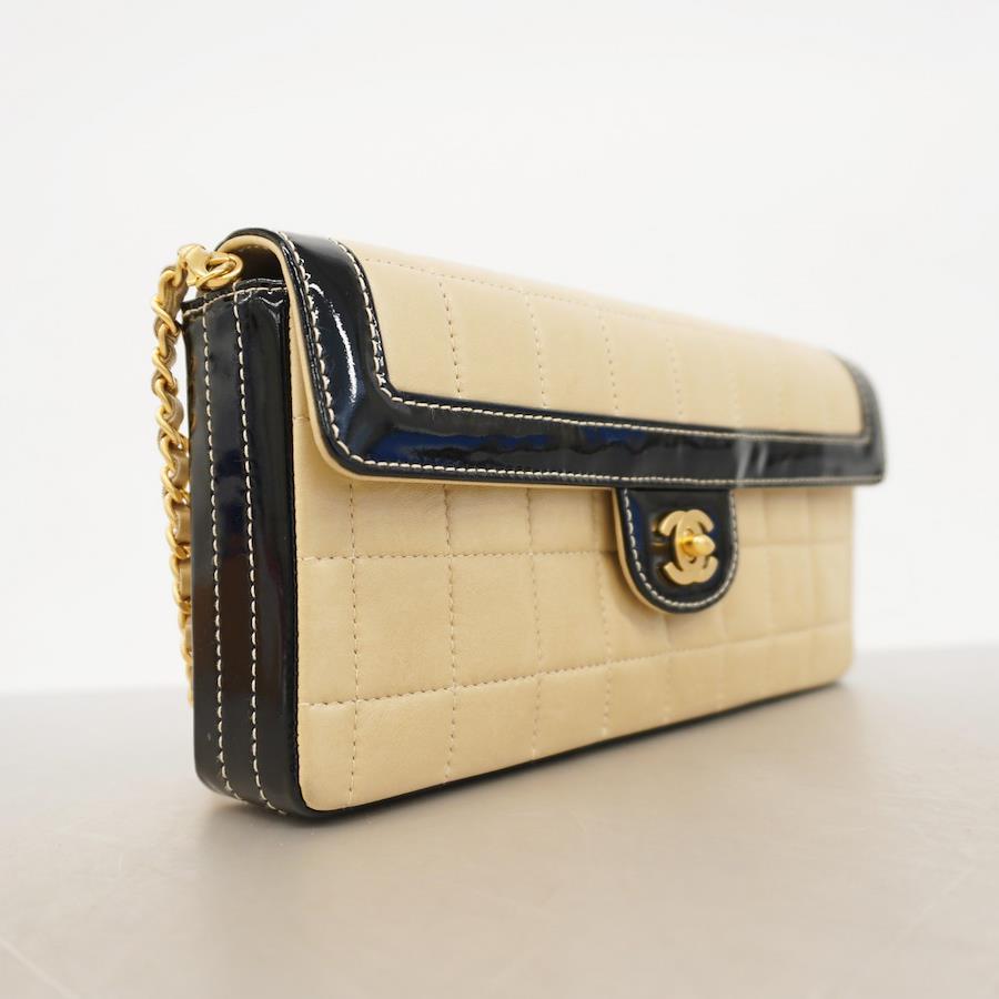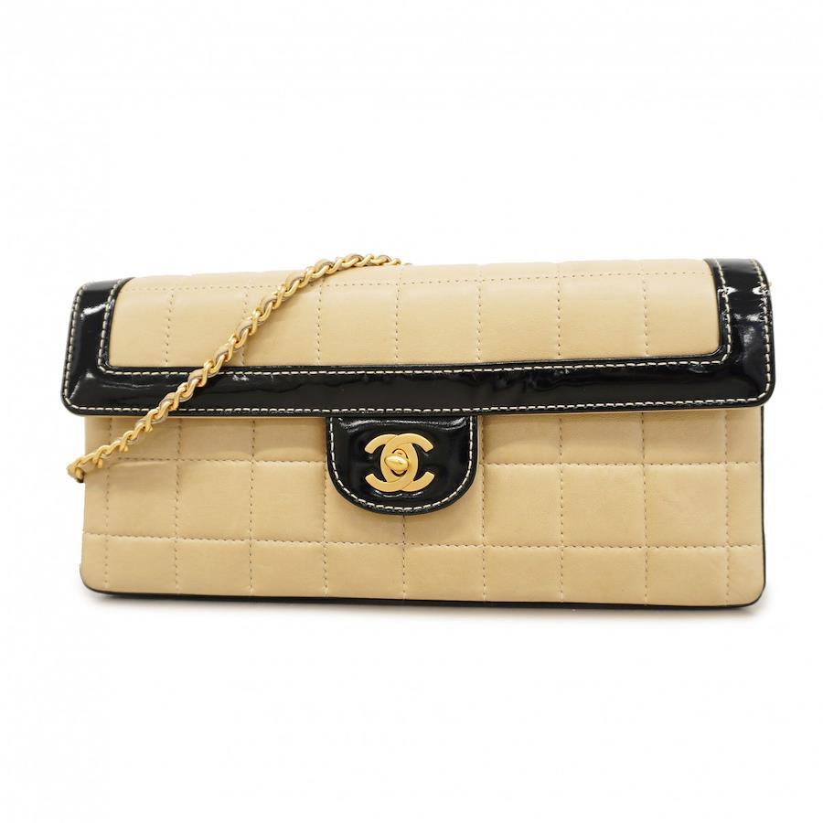 【5id5285-h】シャネル ショルダーバッグ チョコバー ラムスキン パテントレザー ベージュ ブラック ゴールド金具【中古】レディース