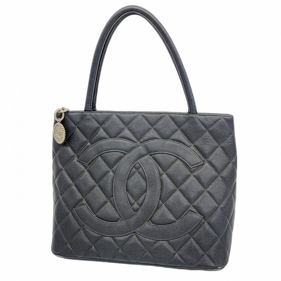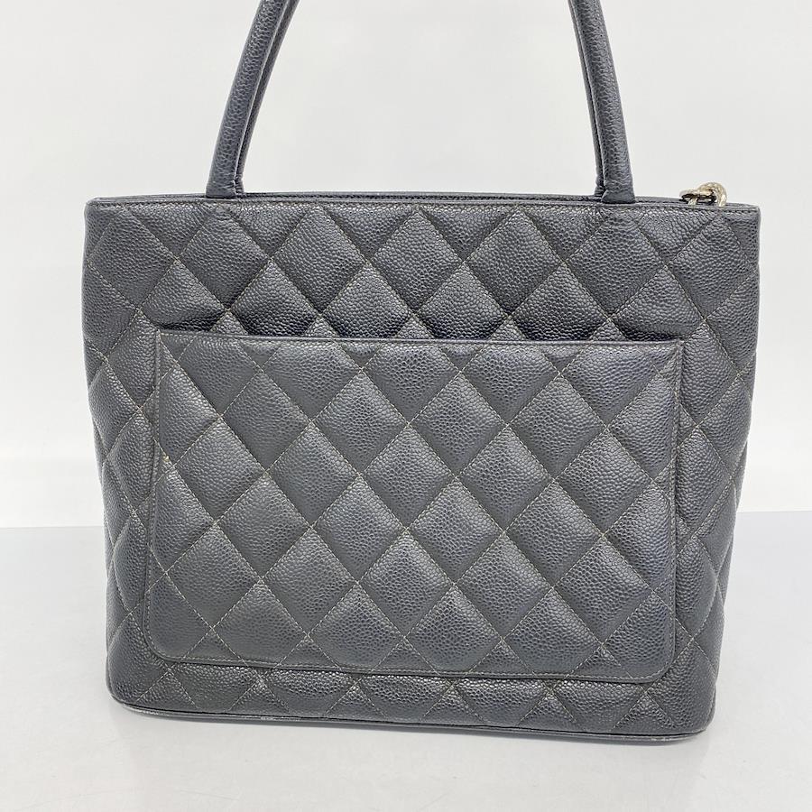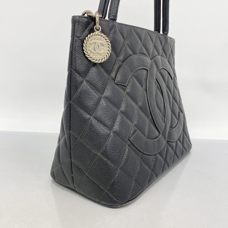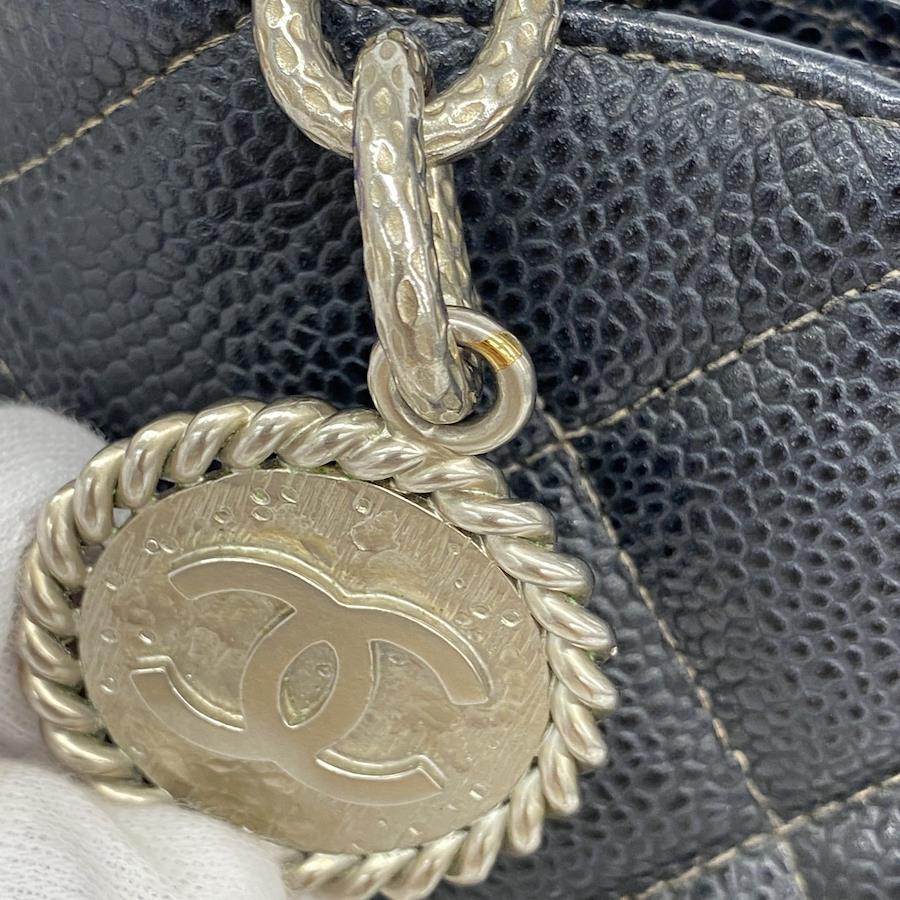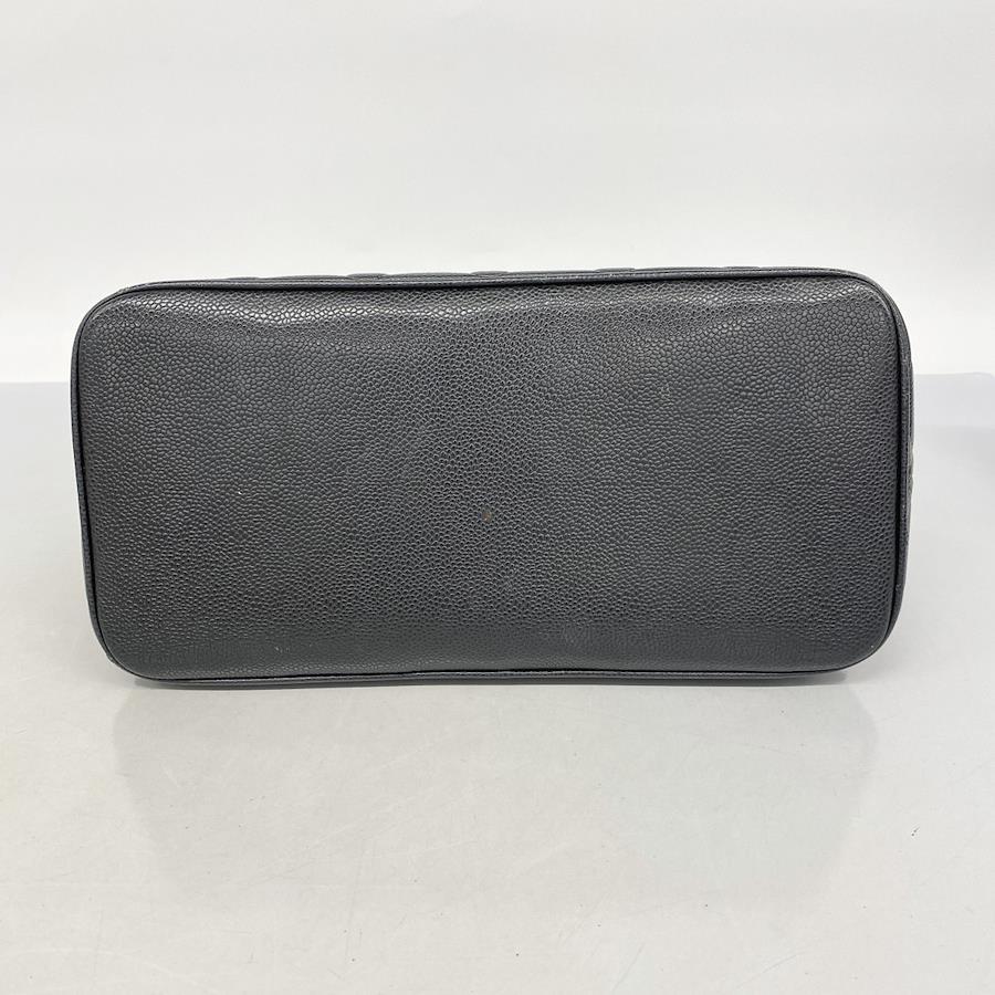 【5id5361-h】シャネル トートバッグトート キャビアスキン ブラック シルバー金具【中古】レディース