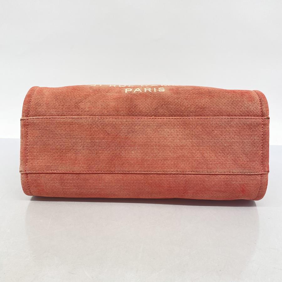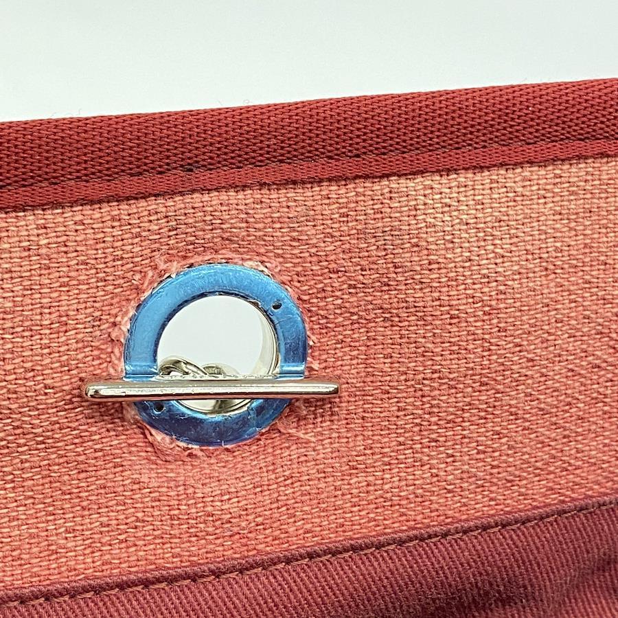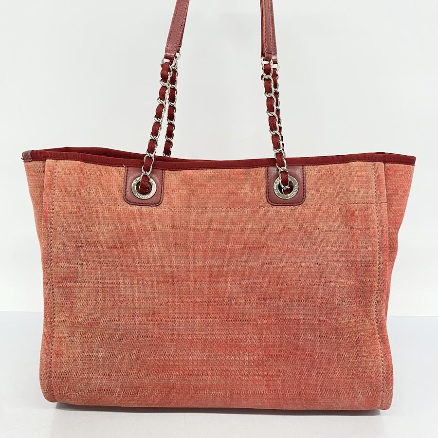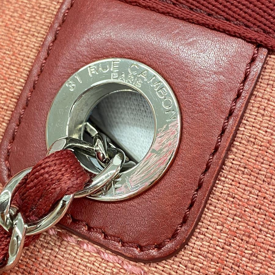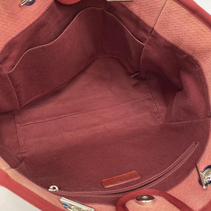 【5id5362-h】シャネル トートバッグ ドーヴィル キャンバス レッド シルバー金具【中古】レディース