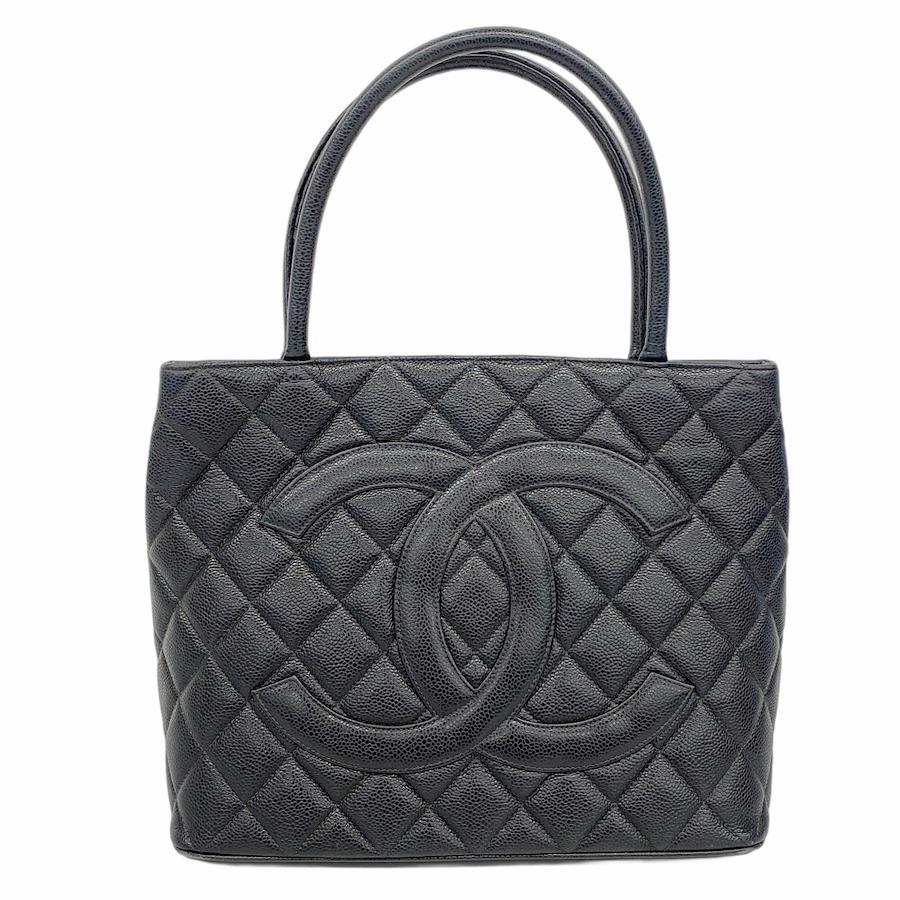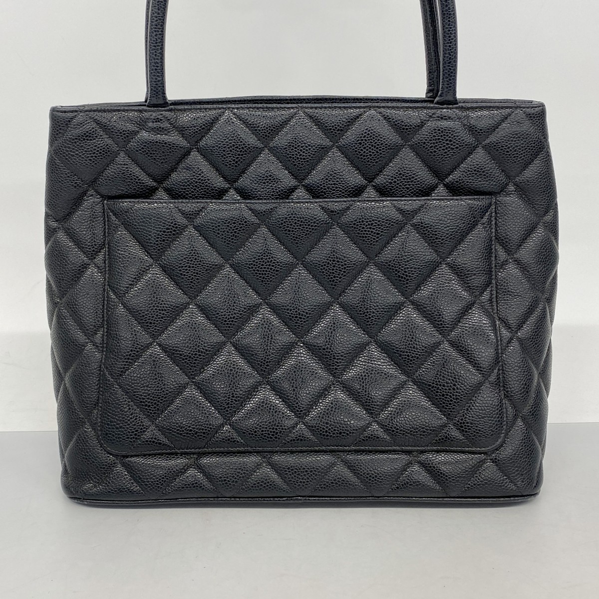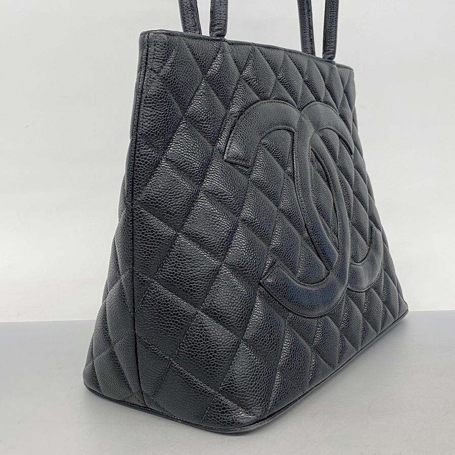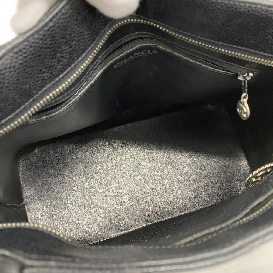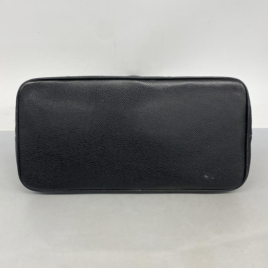 【5id5401-h】シャネル トートバッグトート キャビアスキン ブラック シルバー金具【中古】レディース