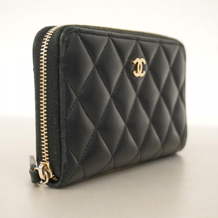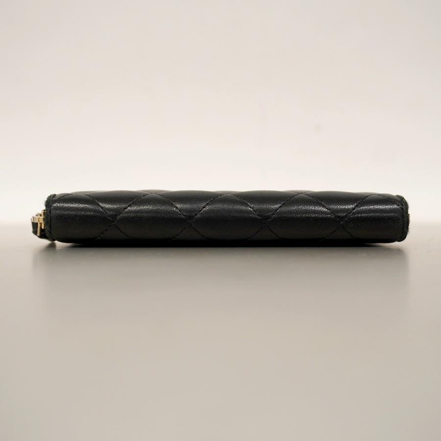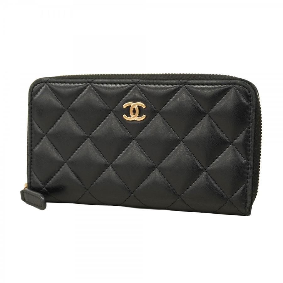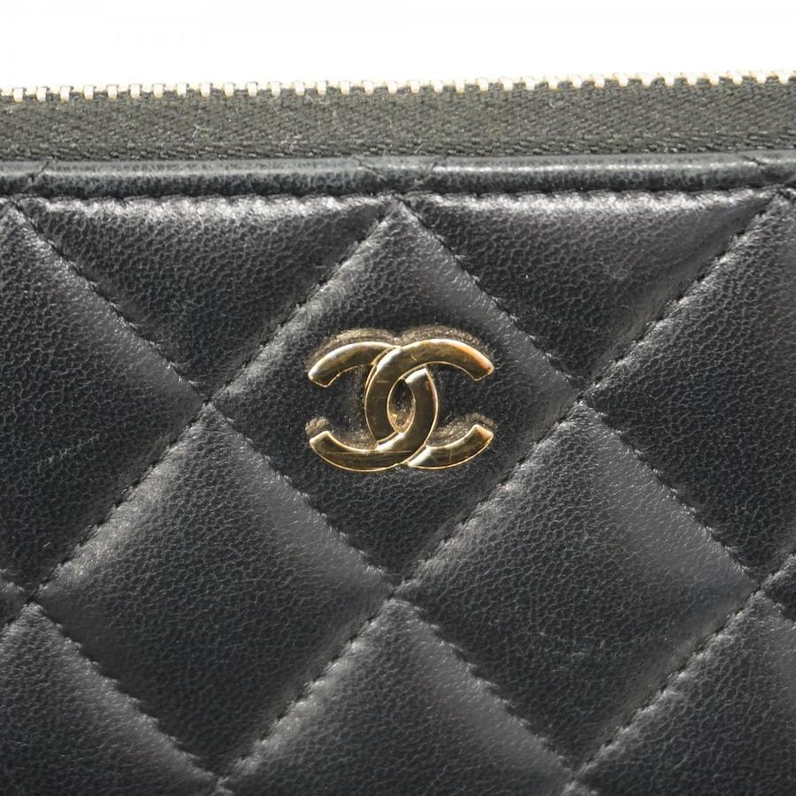 【5id5476-h】シャネル コインケース マトラッセ ラムスキン ブラック シャンパンゴールド金具【中古】レディース