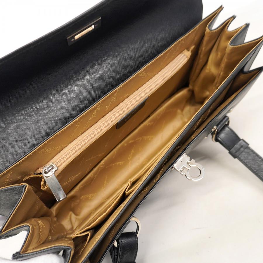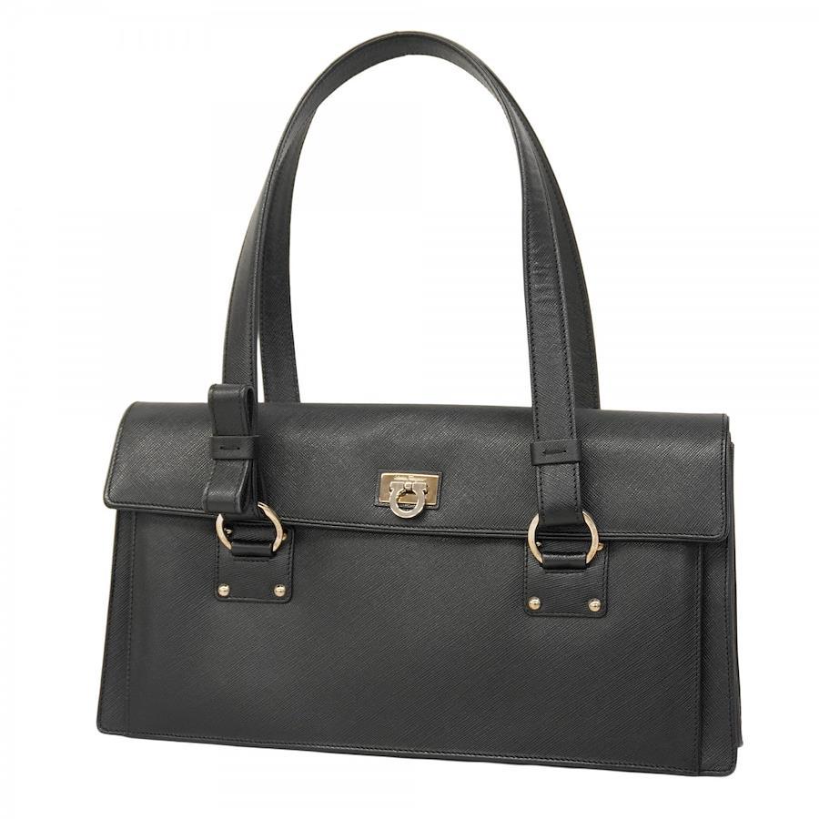 【5id5510-h】サルヴァトーレフェラガモ ショルダーバッグ ガンチーニ レザー ブラック シルバー金具【中古】レディース