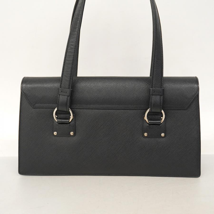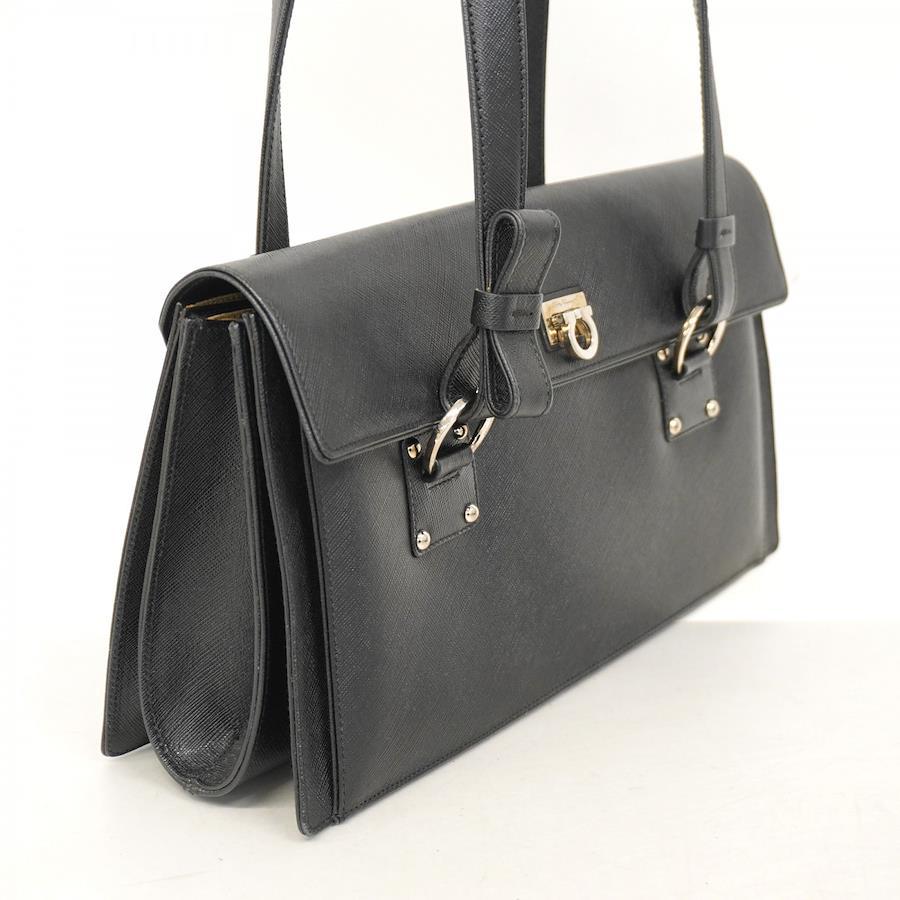 [5id5510-h] Salvatore Ferragamo Gancini Shoulder Bag, Black Leather, Silver Hardware, Pre-owned, Women's