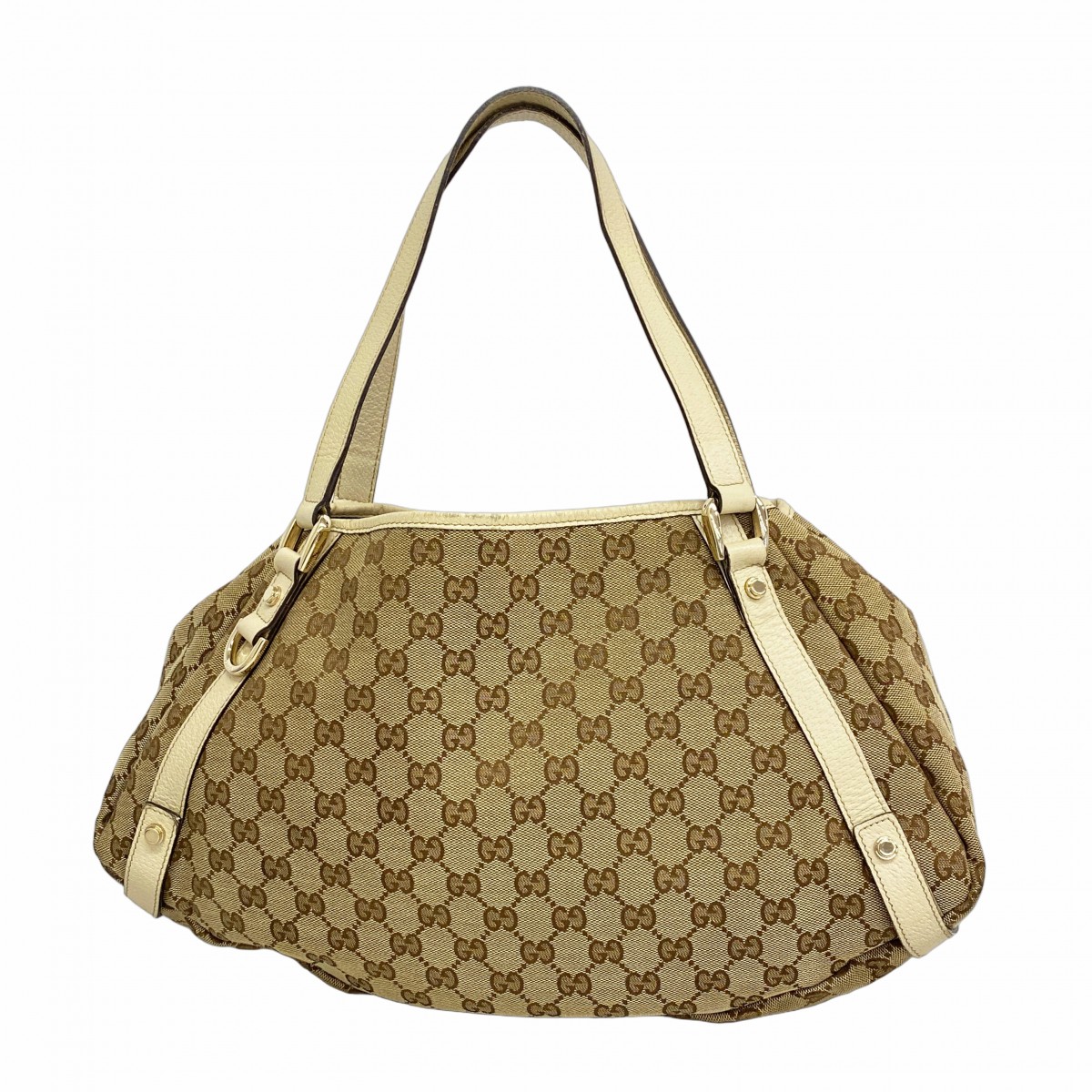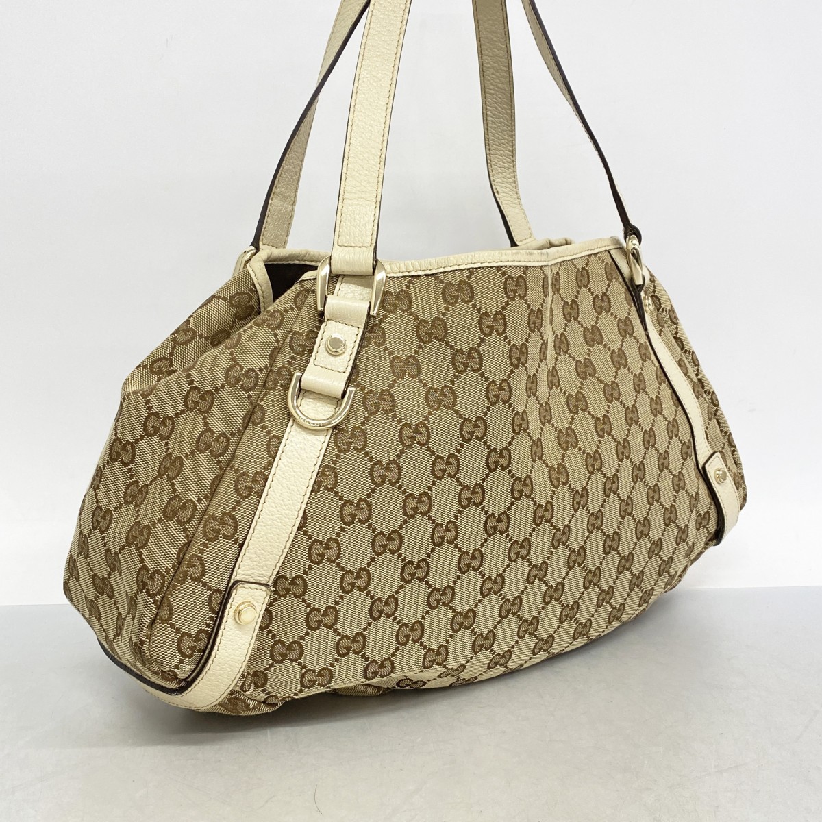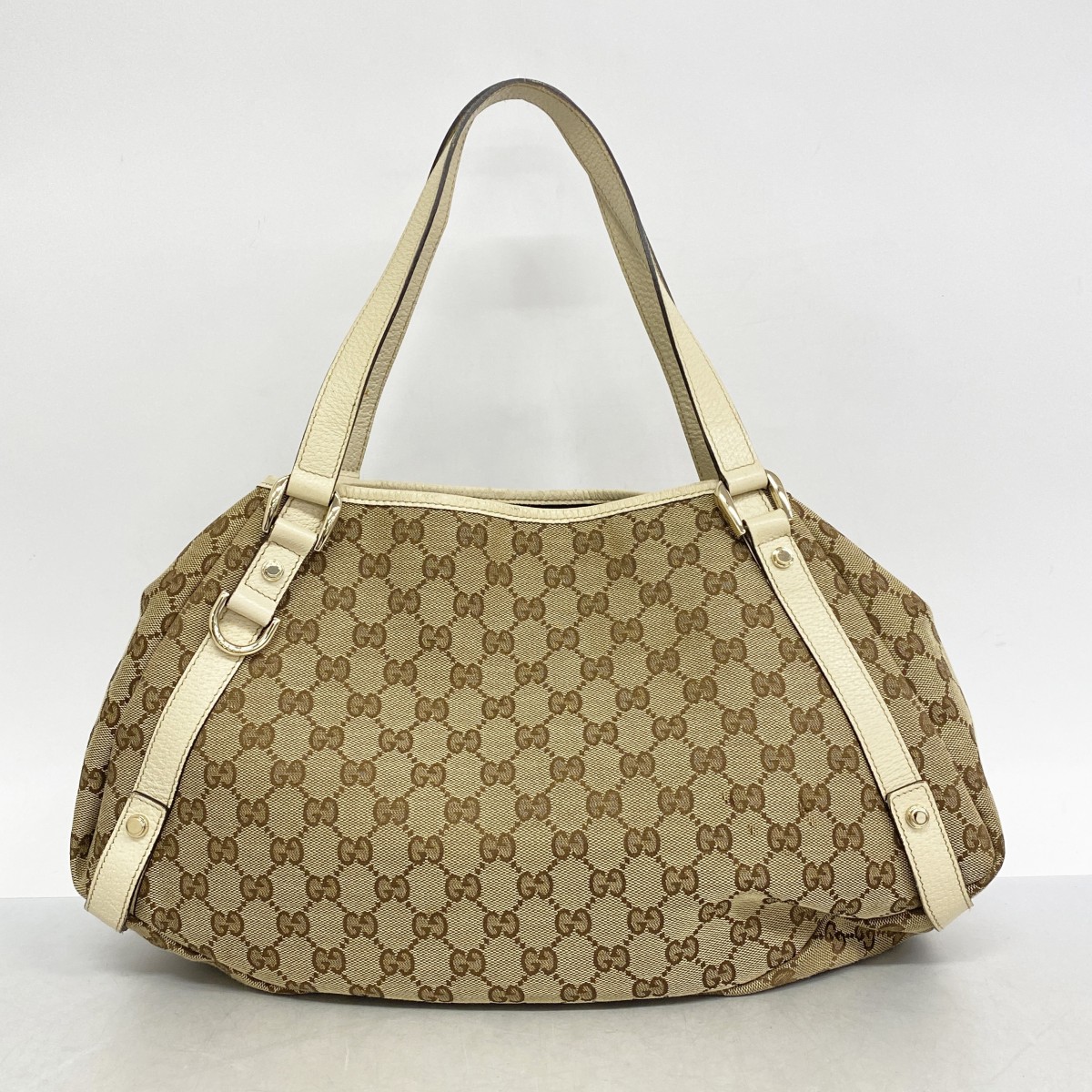 【5id5550-h】グッチ トートバッグ GGキャンバス/アビー 130736 キャンバス ブラウン ホワイト シャンパンゴールド金具【中古】レディース