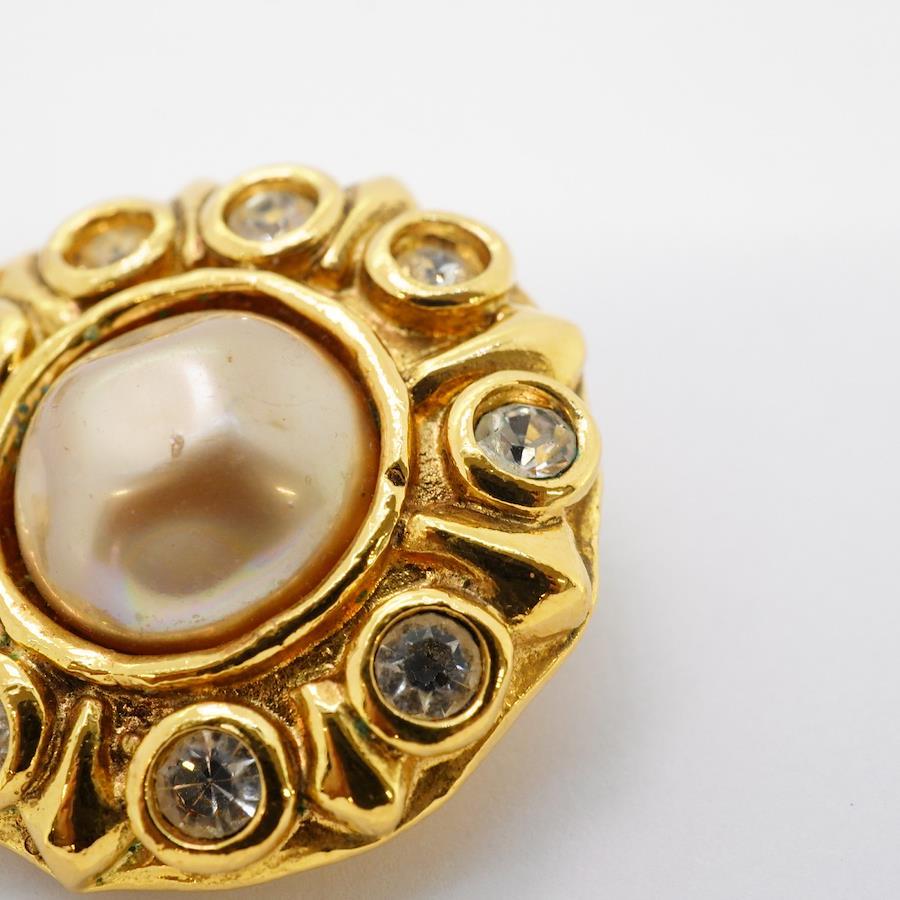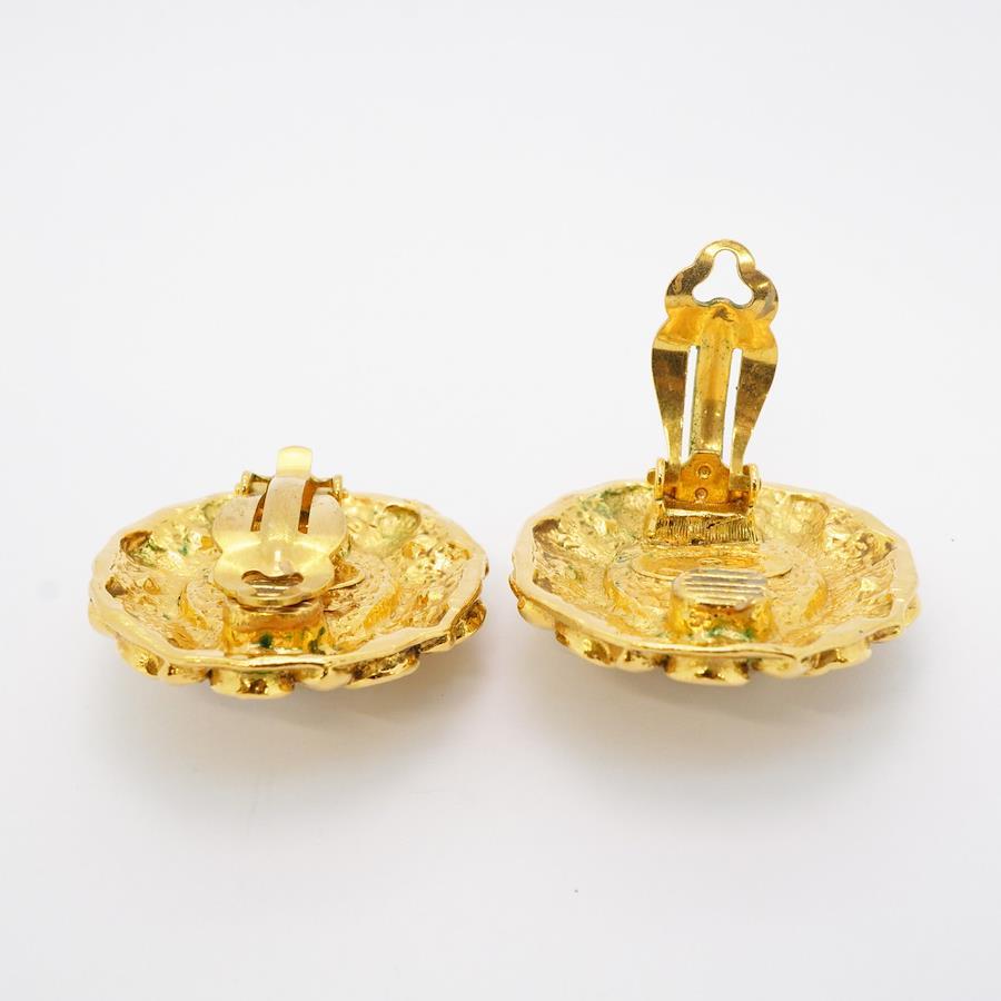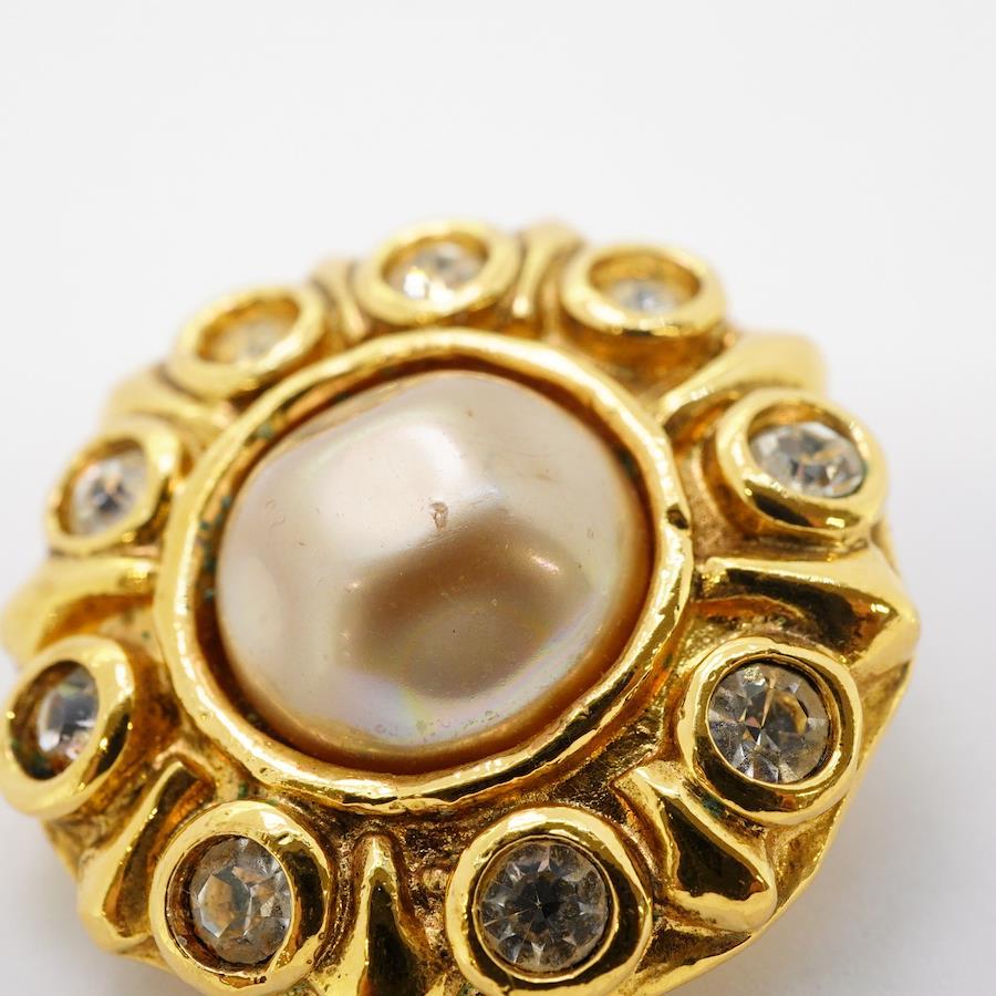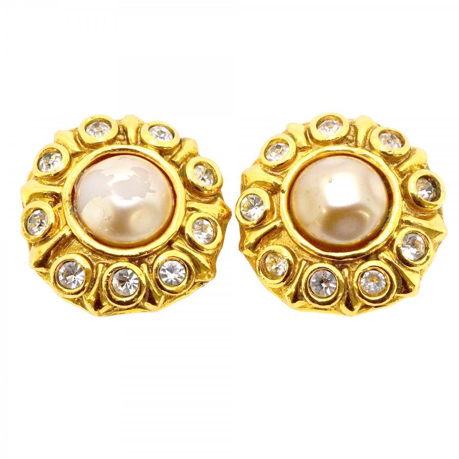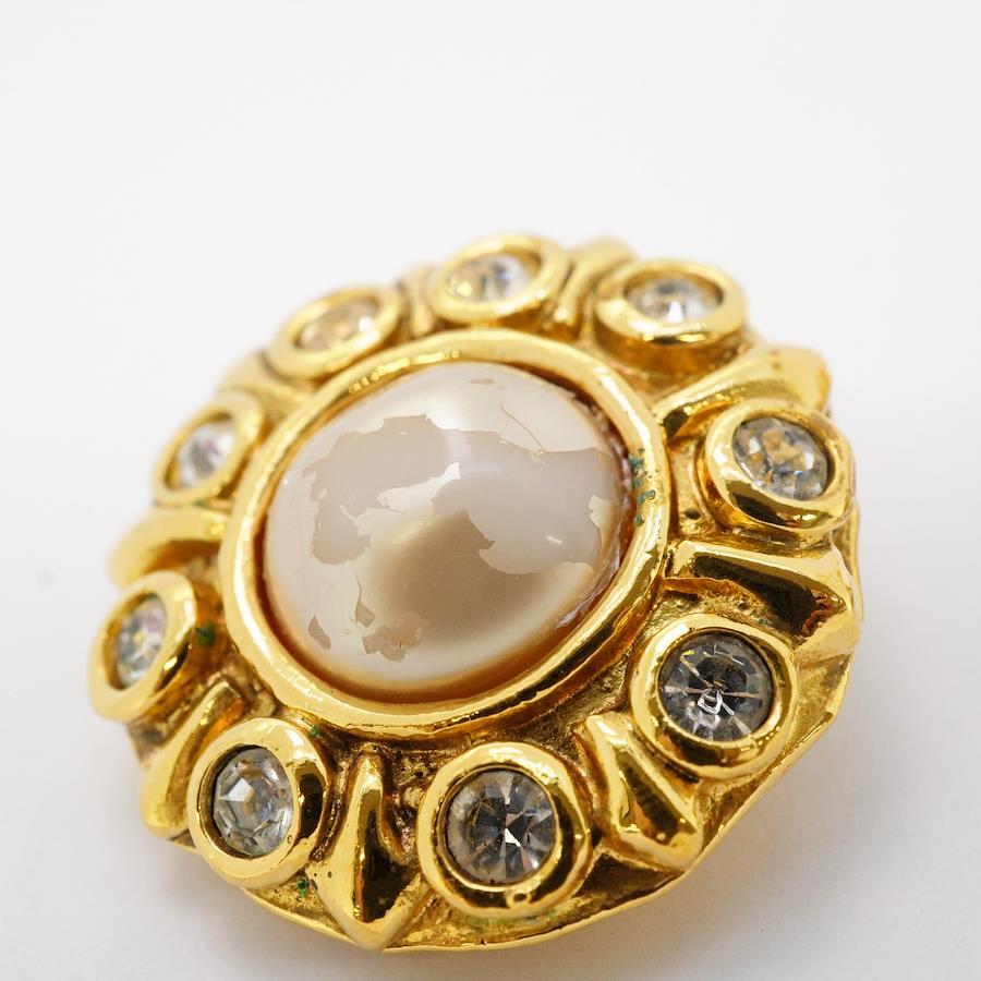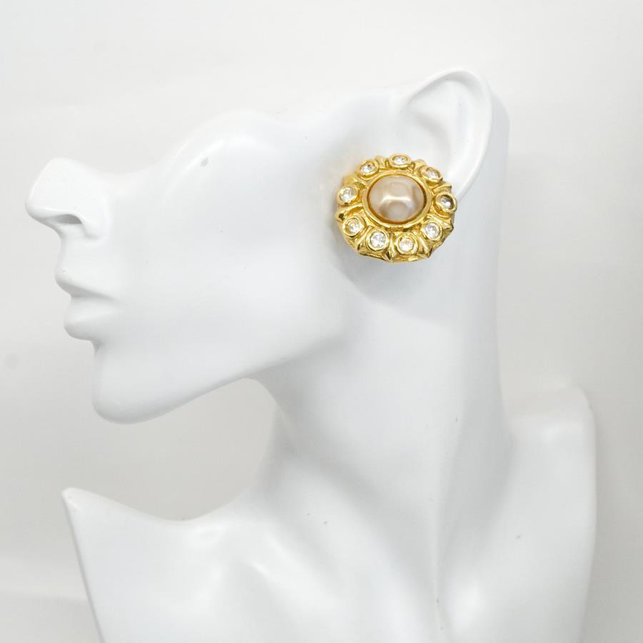 【5jhb0770】シャネル イヤリング ヴィンテージ 丸型 サークル GPメッキ ラインストーン フェイクパール ゴールド【中古】レディース