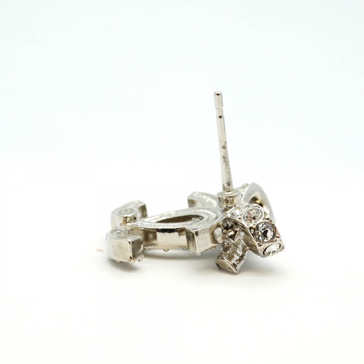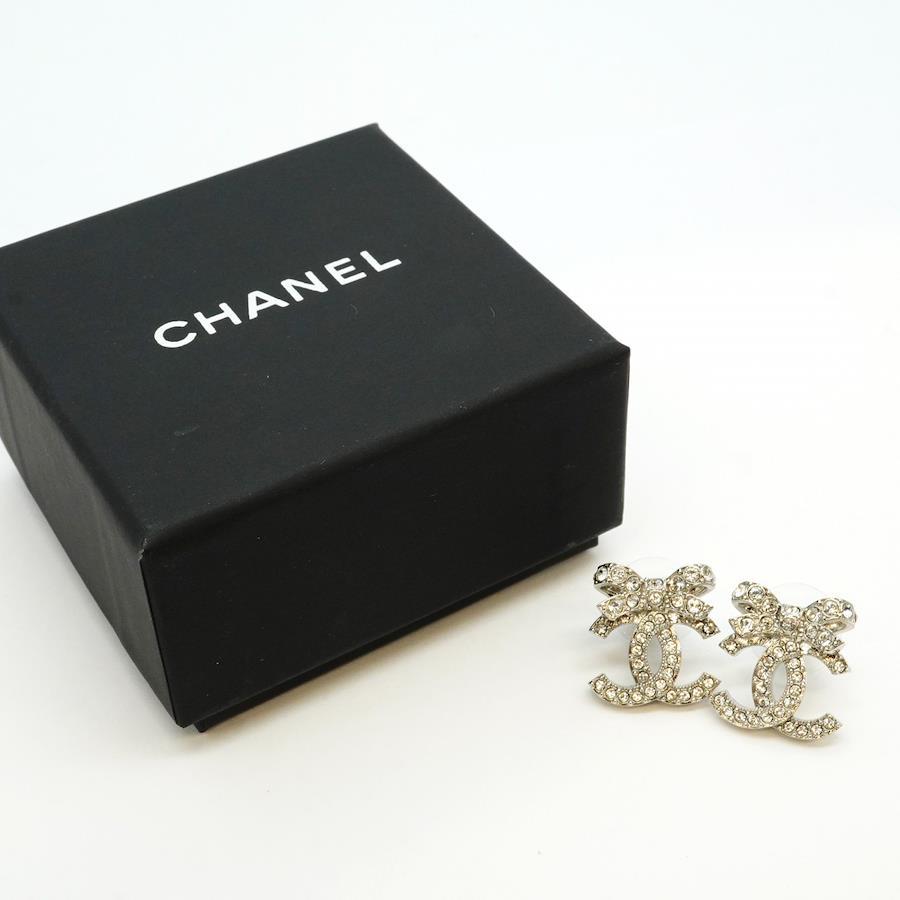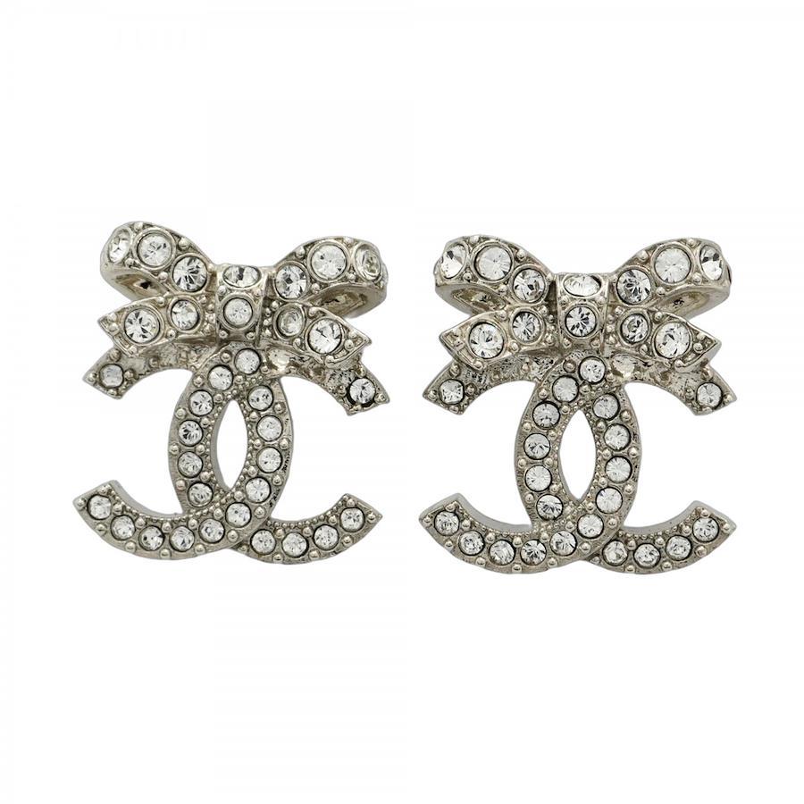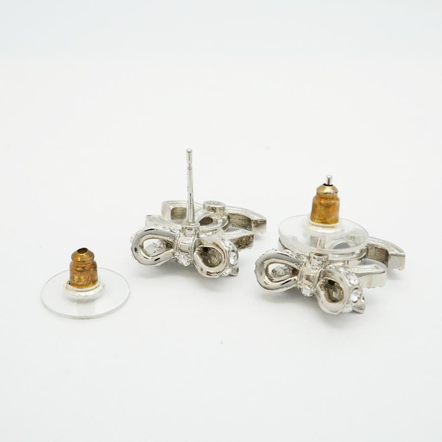 【5jib0109】シャネル ピアス ココマーク リボンモチーフ GPメッキ ラインストーン シルバー【中古】レディース