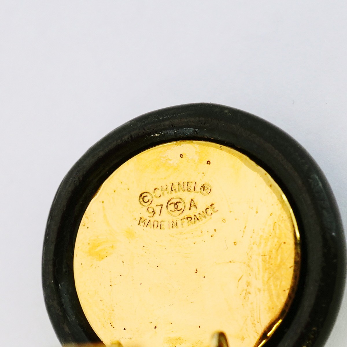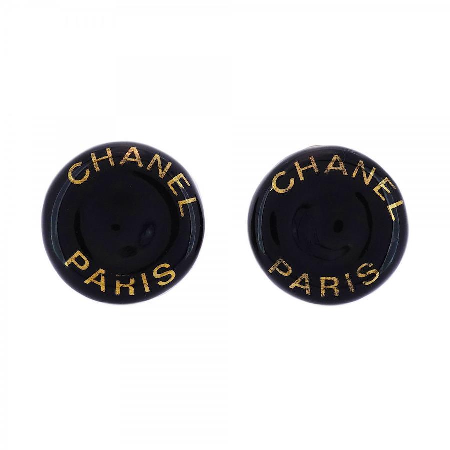 【5jib0197】シャネル イヤリング ヴィンテージ シャネルロゴ 丸型 サークル GPメッキ プラスチック ゴールド ブラック【中古】レディース