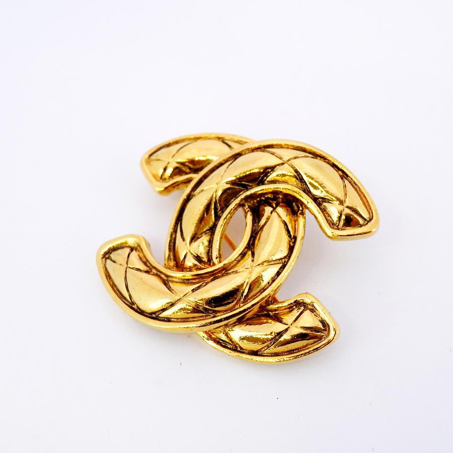 【5jib0307】シャネル ブローチ ヴィンテージ ココマーク マトラッセ GPメッキ ゴールド【中古】レディース