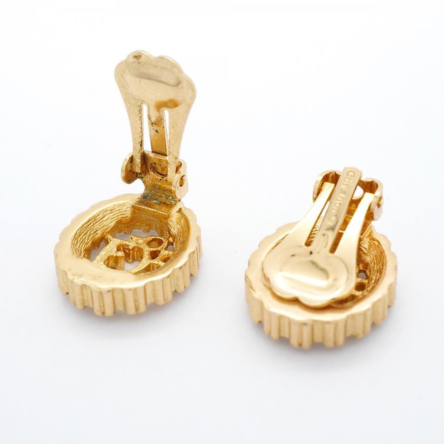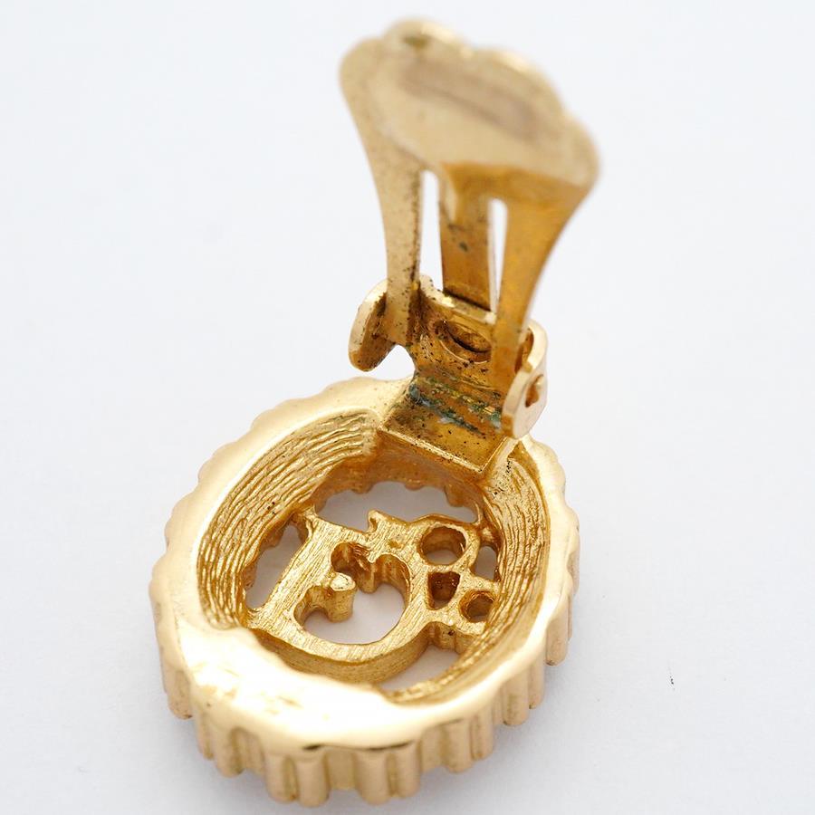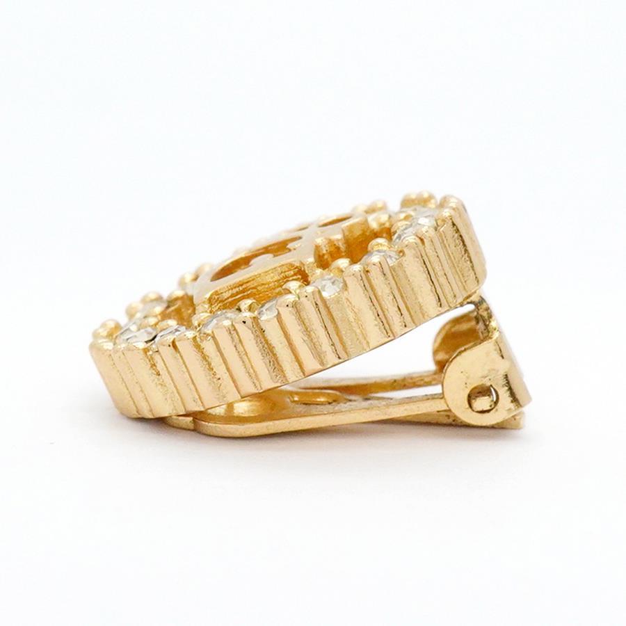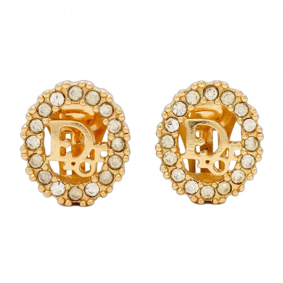 【5jib0369】クリスチャンディオール イヤリング ディオールロゴ オーバル GPメッキ ラインストーン ゴールド【中古】レディース