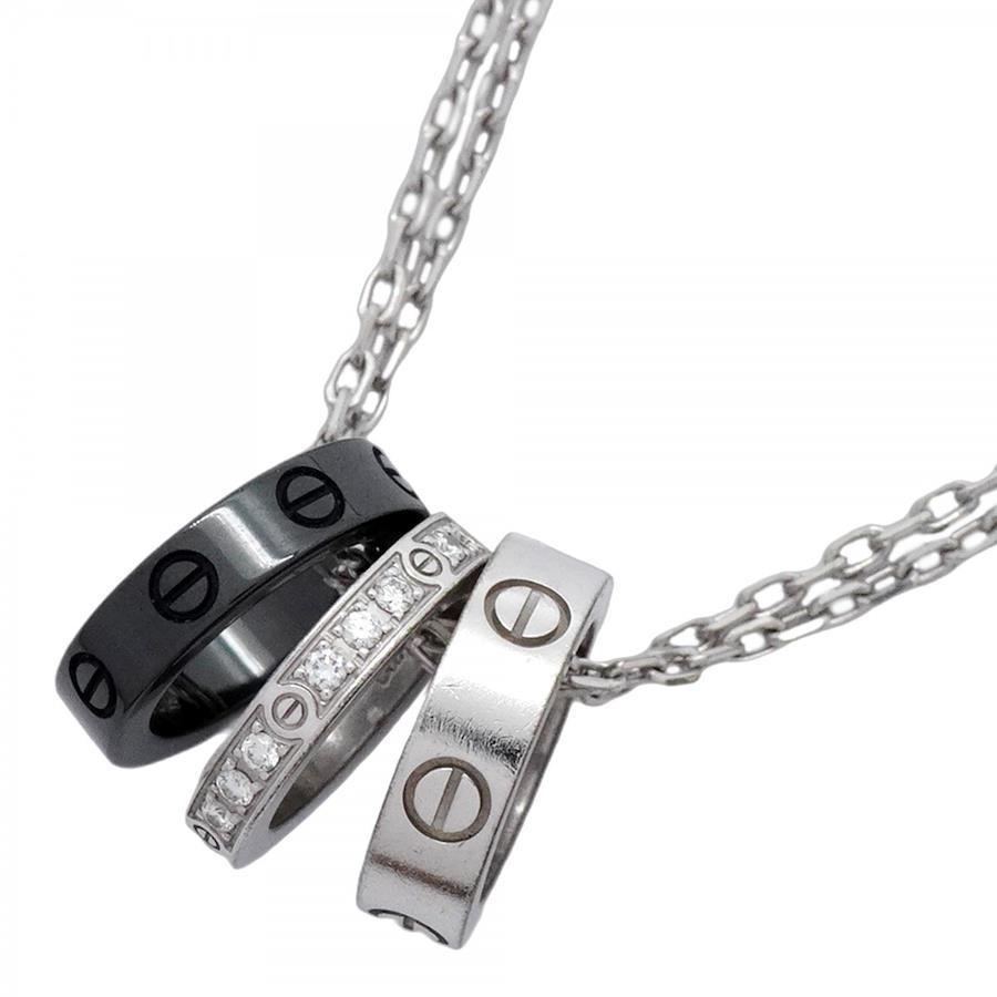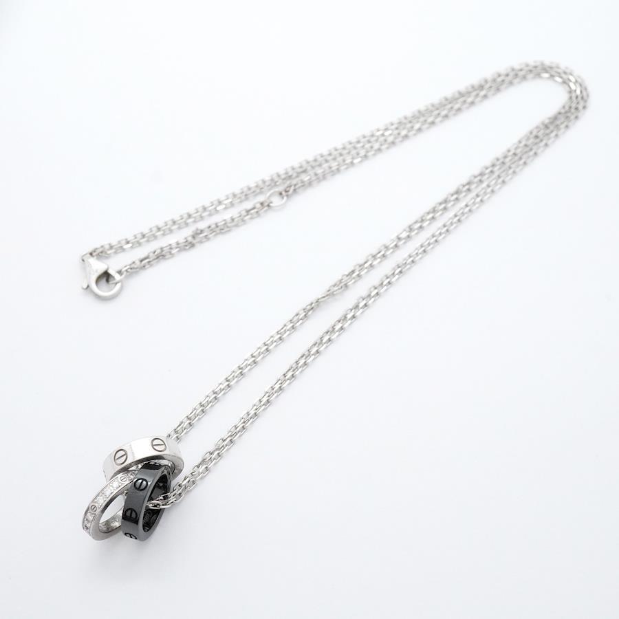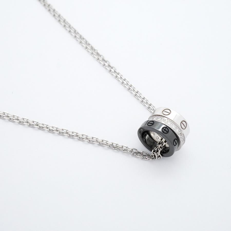 【5jib0370】カルティエ ネックレス ラブ スリーフープ K18WG ホワイトゴールド セラミック ダイヤモンド ブラック【中古】レディース