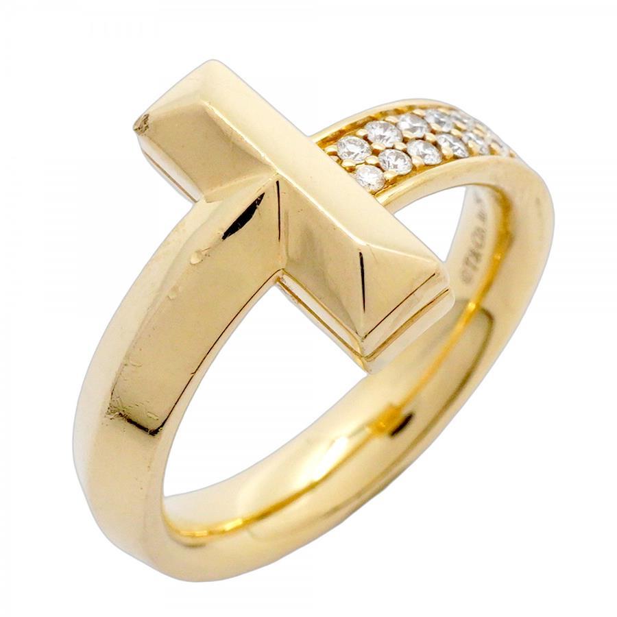 【5jib0372】ティファニー リング Tワン K18YG イエローゴールド ダイヤモンド 0.24ct 17号【中古】メンズ