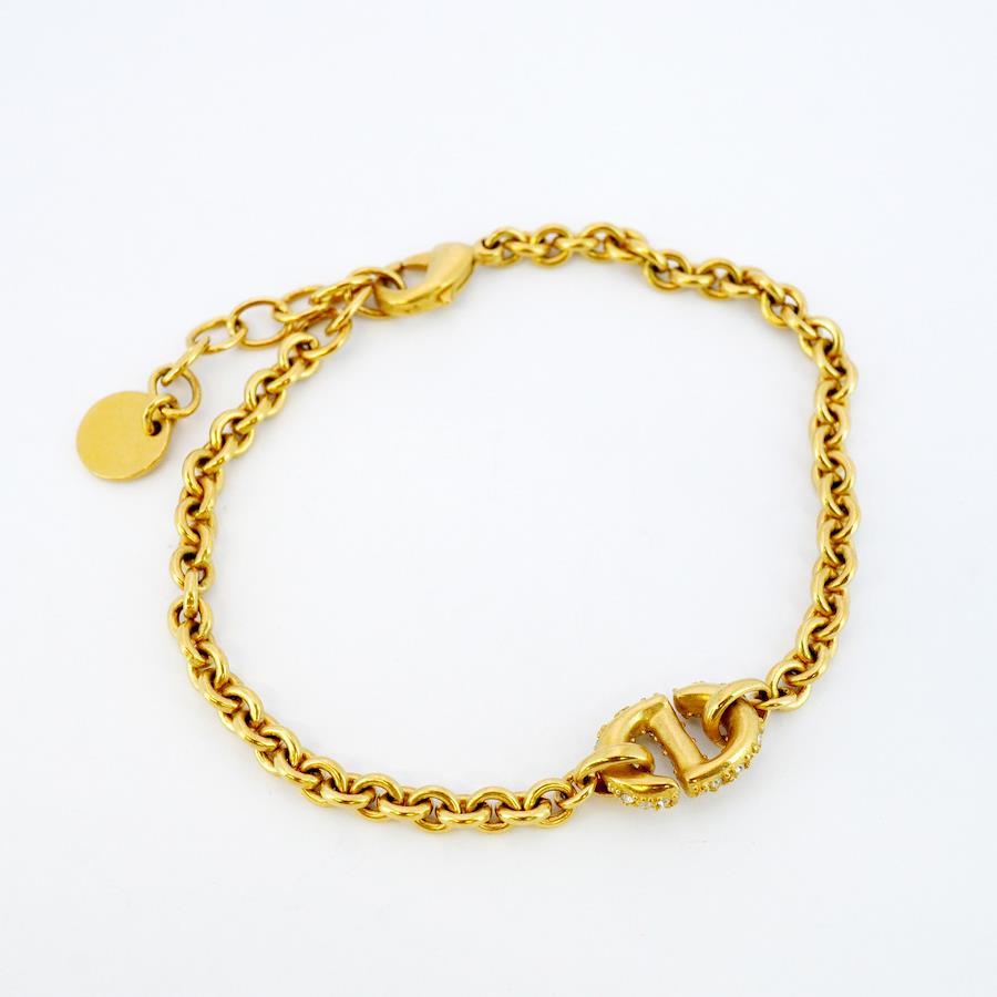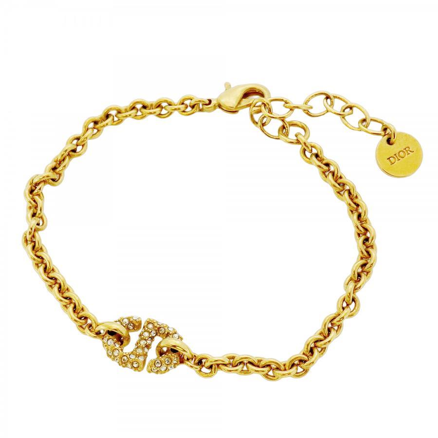 【5jib0376】クリスチャンディオール ブレスレット CDロゴ GPメッキ ラインストーン ゴールド【中古】レディース