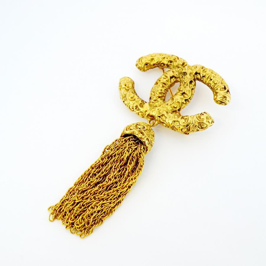 【5jib0429】シャネル ブローチ ヴィンテージ ココマーク 溶岩モチーフ GPメッキ ゴールド【中古】レディース