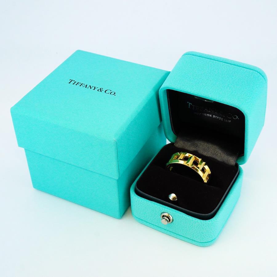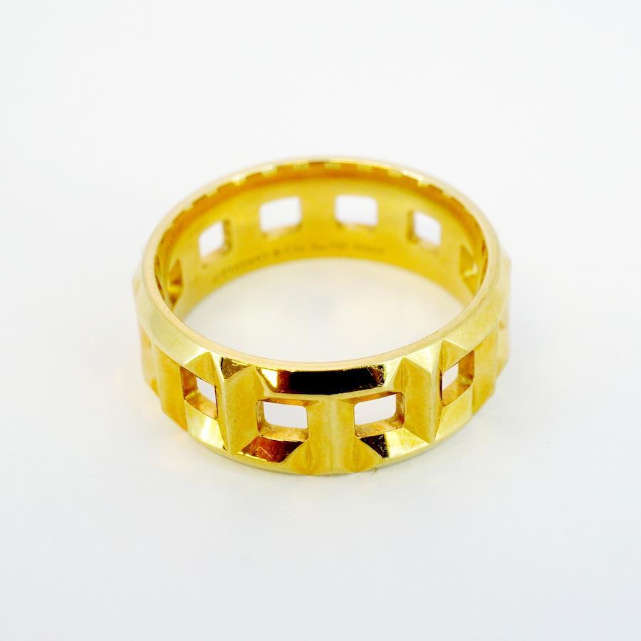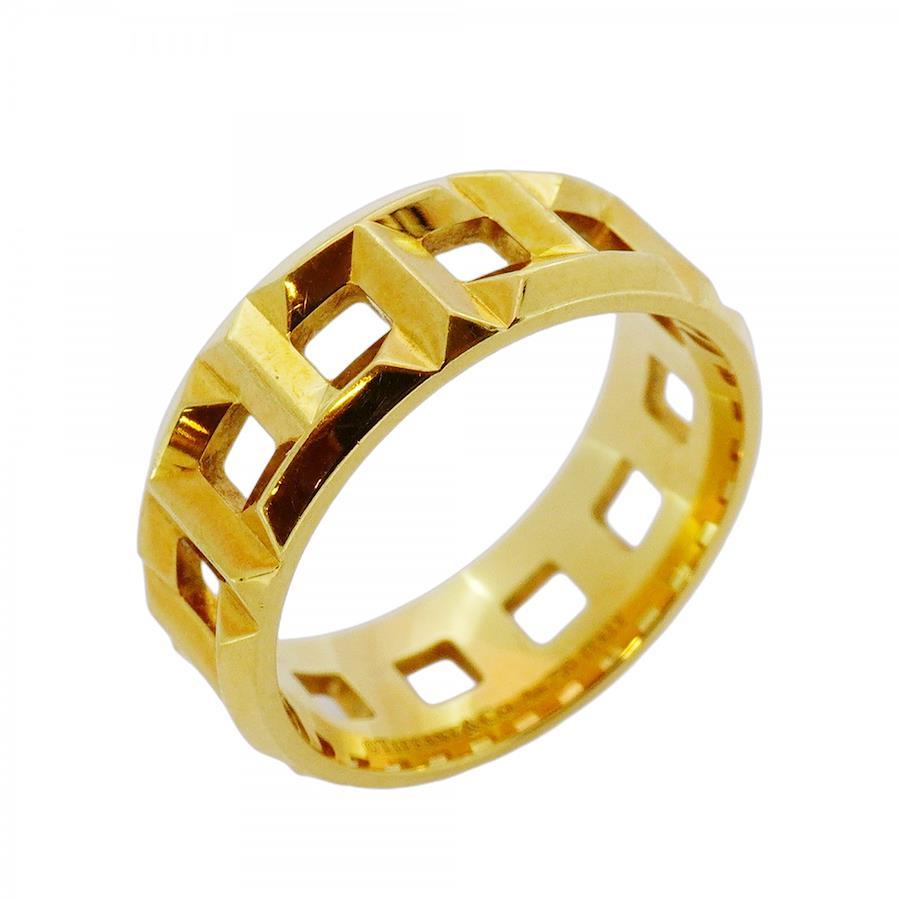 【5jib0430】ティファニー リング Tトゥルー ワイド K18YG イエローゴールド 19号【中古】メンズ
