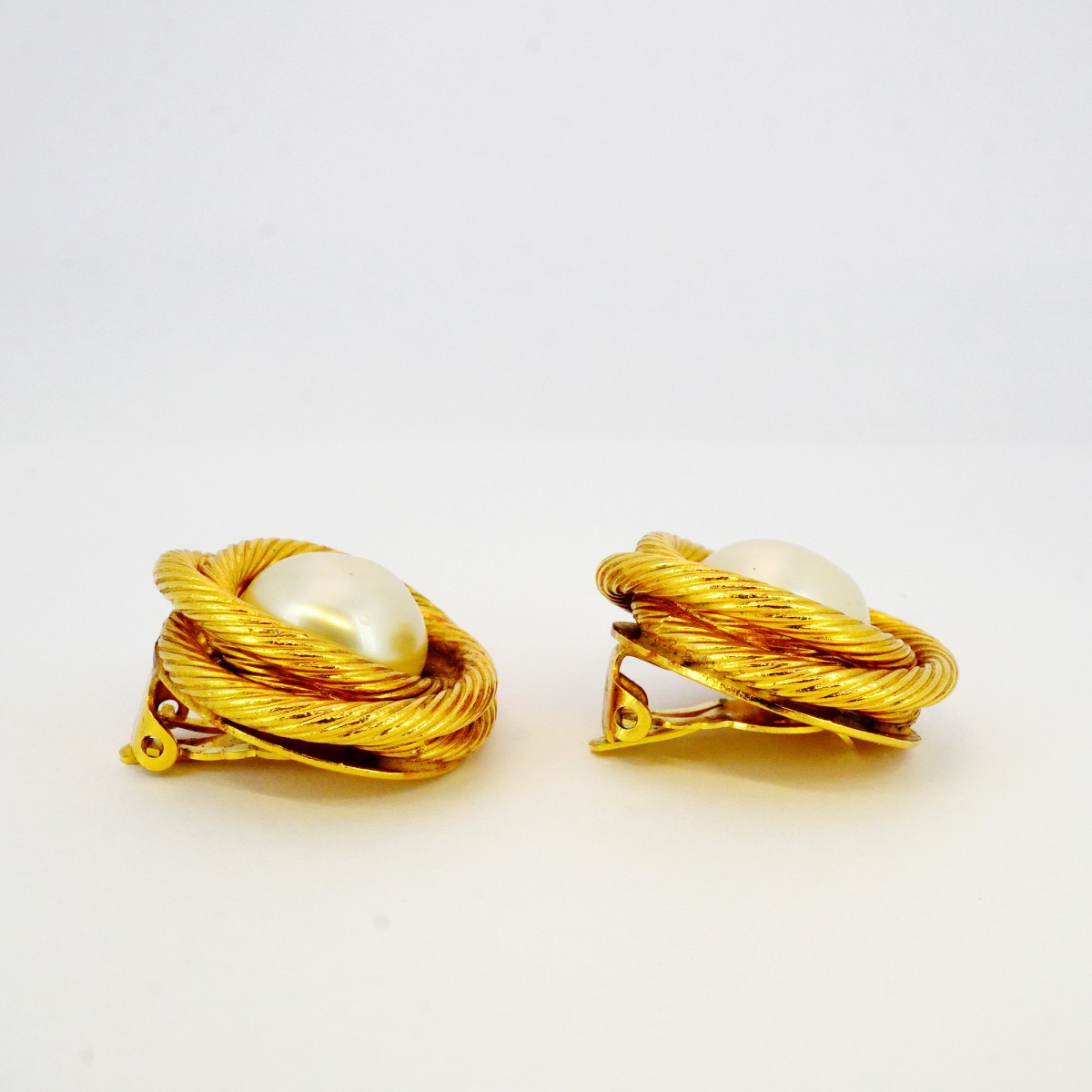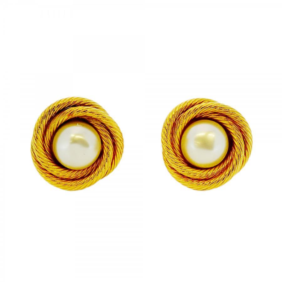 【5jib0438】シャネル イヤリング ヴィンテージ 丸型 サークル GPメッキ フェイクパール ゴールド【中古】レディース