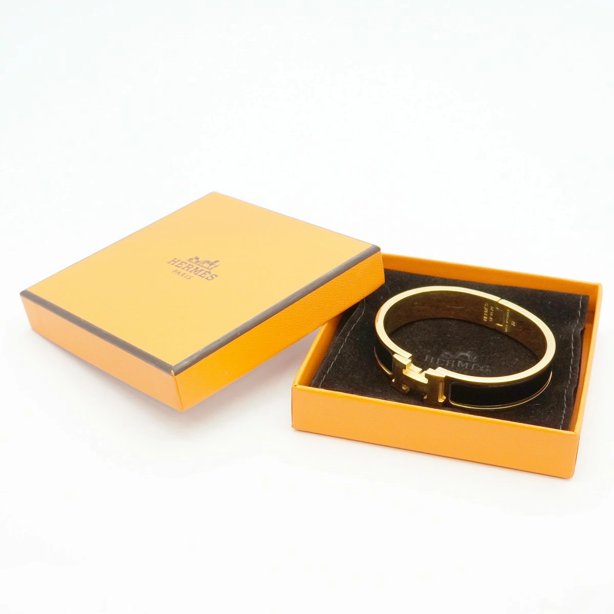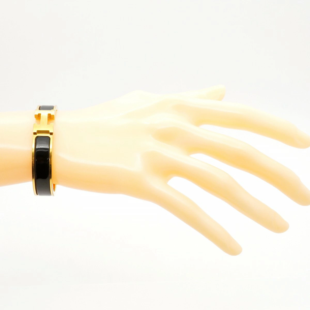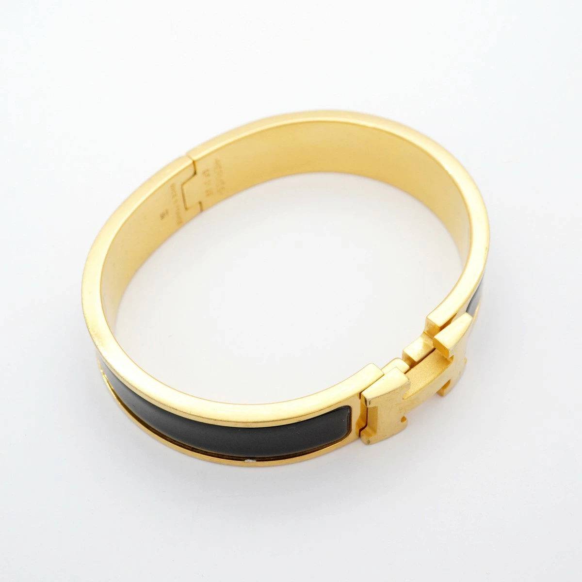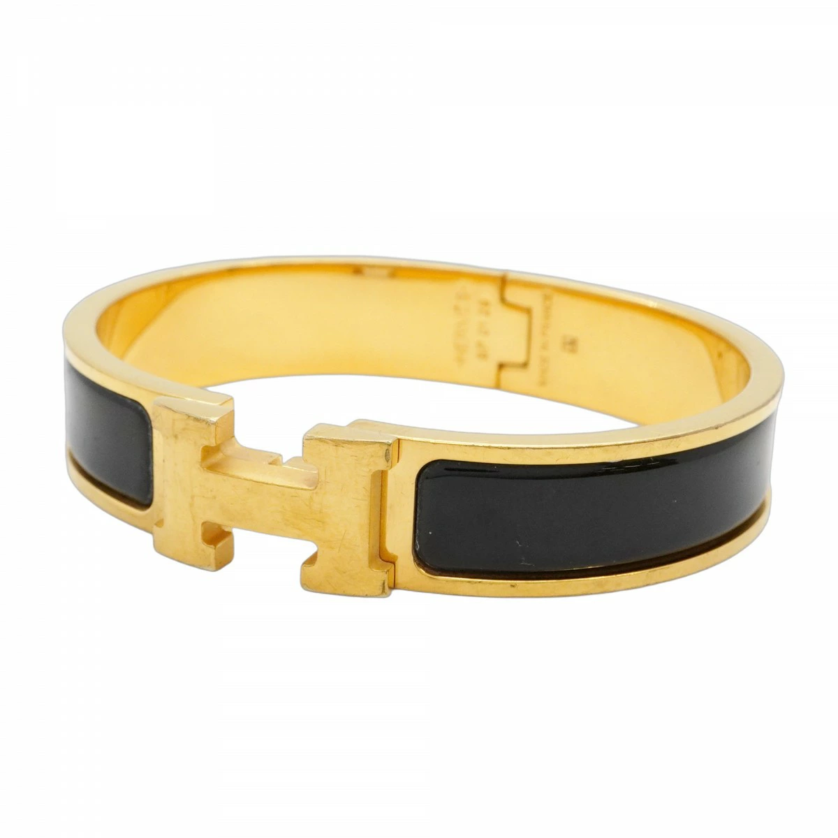【5jmb0134】エルメス バングル クリッククラックPM GPメッキ ゴールド ブラック【中古】レディース
