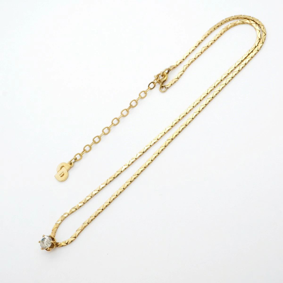 ★SALE【5jmb0270】クリスチャンディオール ネックレス GPメッキ ラインストーン ゴールド【中古】レディース