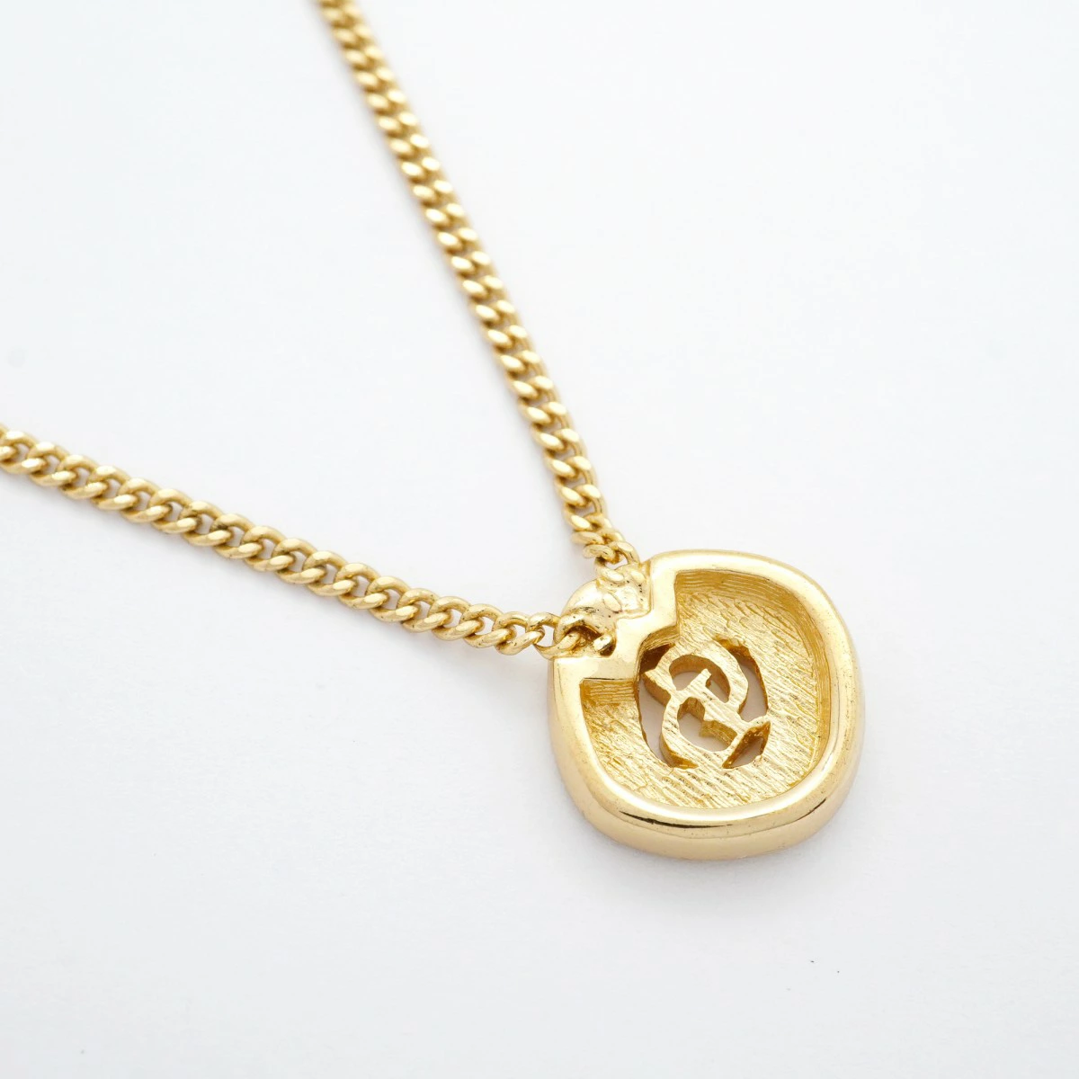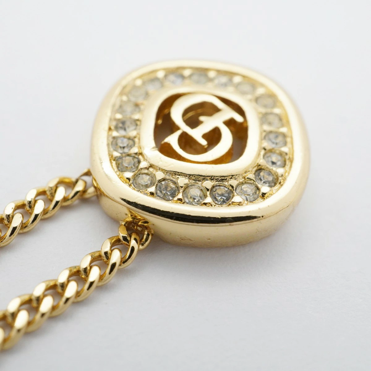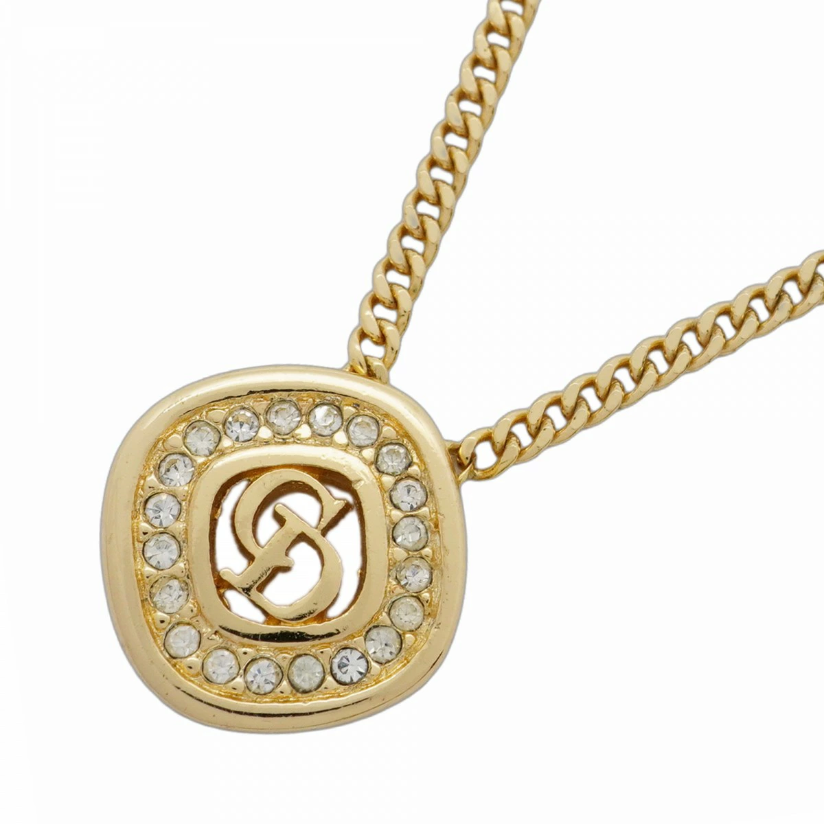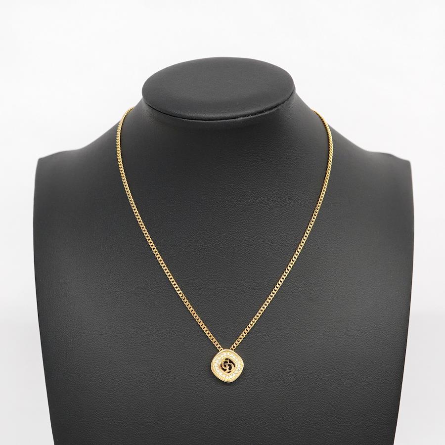 [5jmb0386] Christian Dior Necklace with CD Logo, GP Plated, Rhinestones, Gold, Pre-owned, Women's