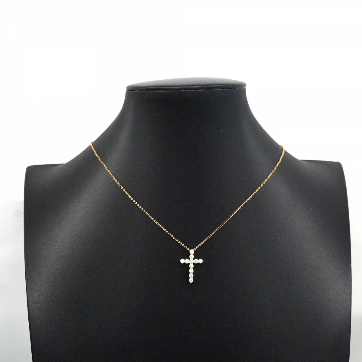 【5jmb0437】ティファニー ネックレス クロス 11PD K18YG イエローゴールド ダイヤモンド【中古】レディース