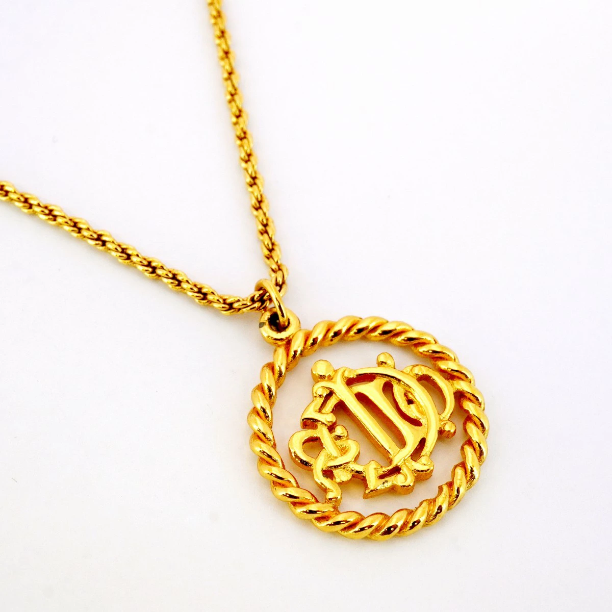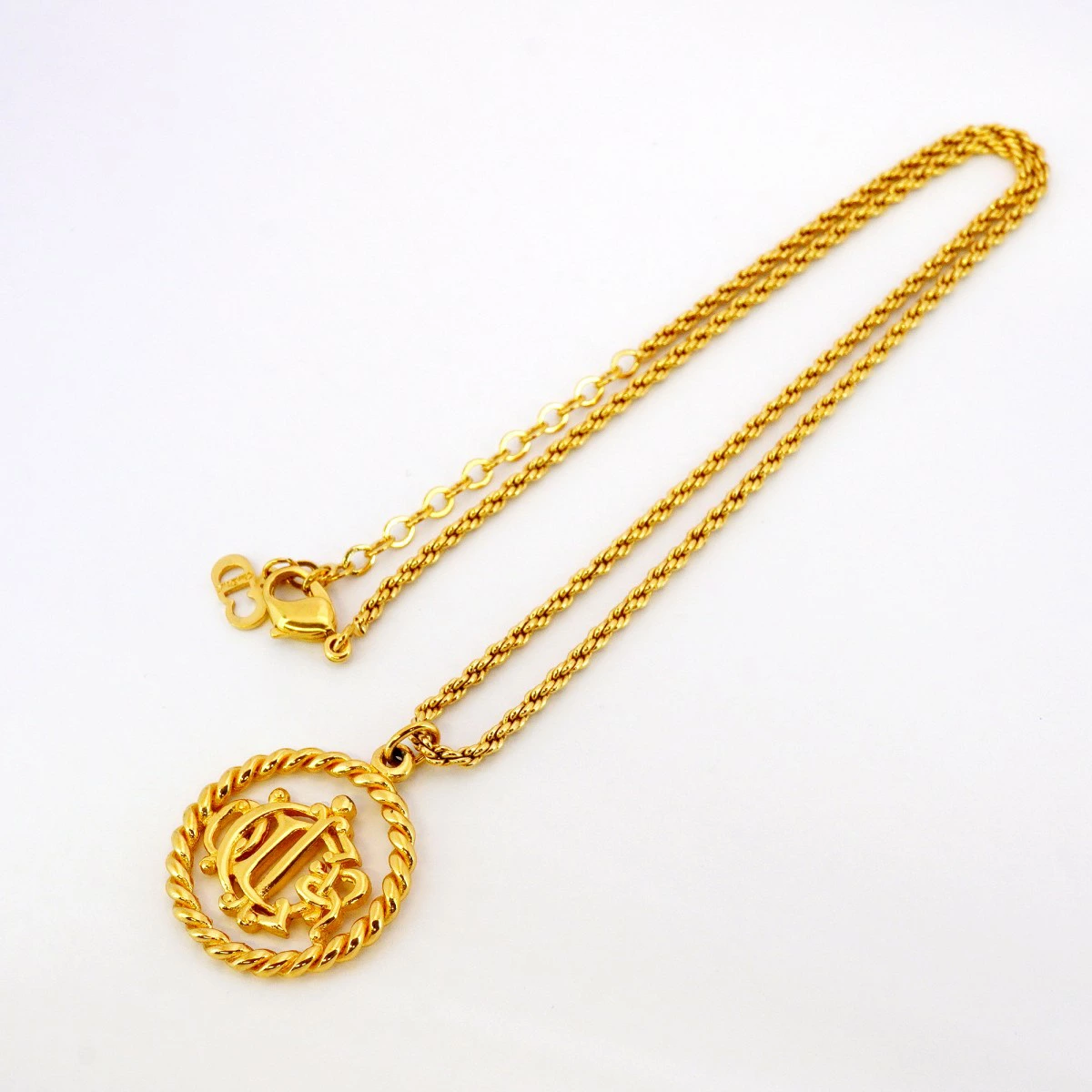 ★SALE【5jmb0450】クリスチャンディオール ネックレス エンブレム 丸型 サークル GPメッキ ゴールド【中古】レディース