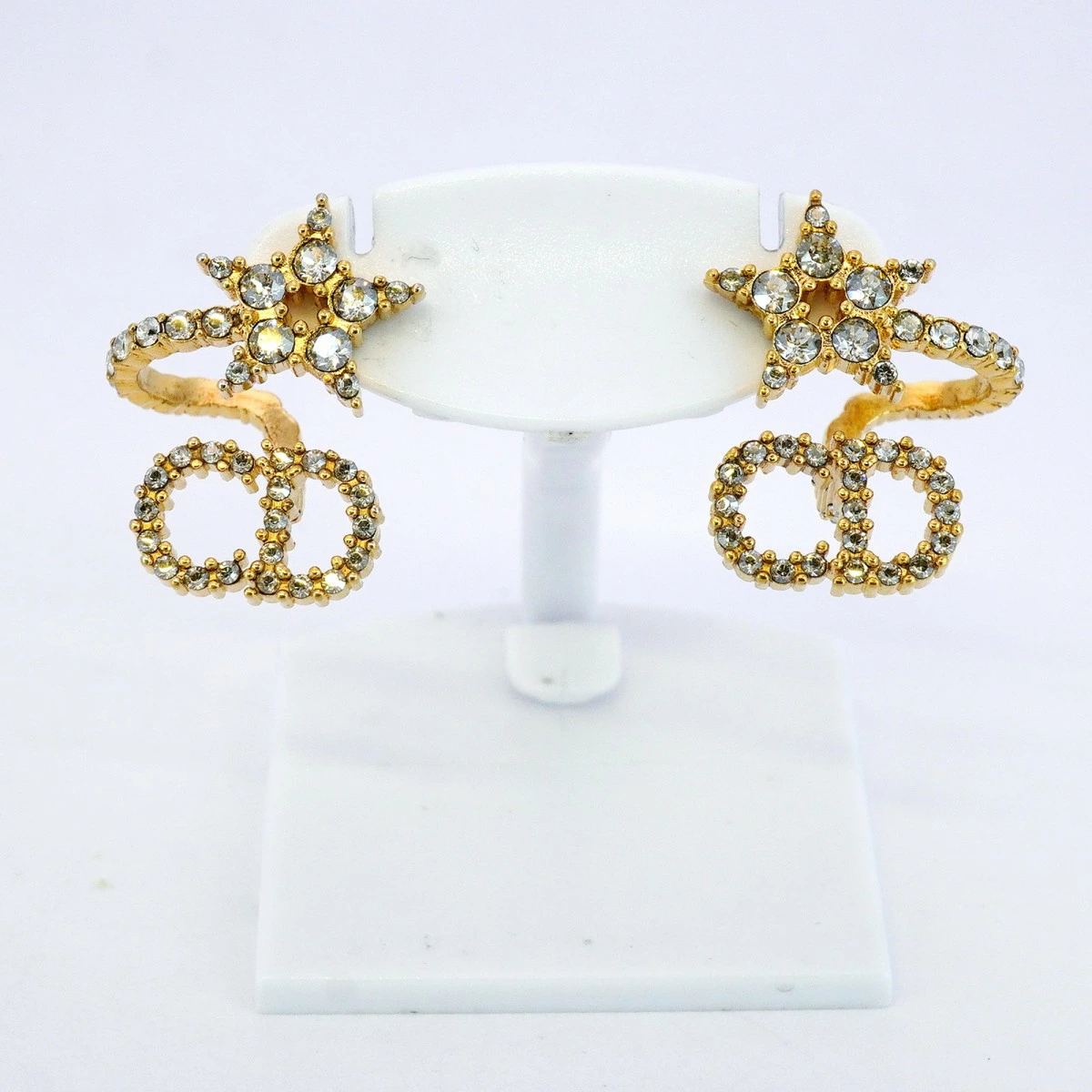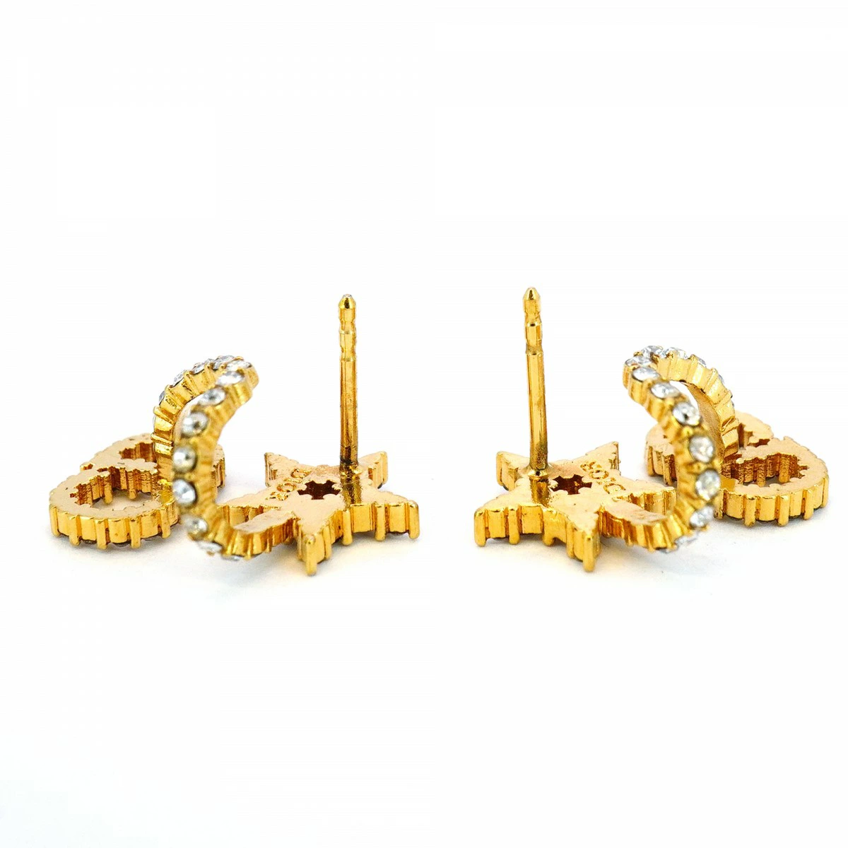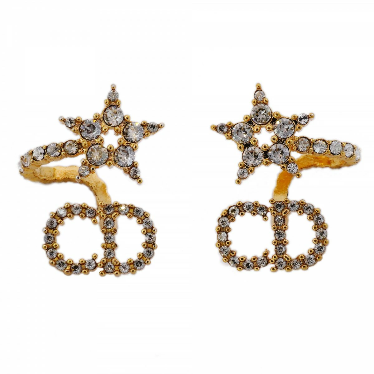 【5jmb0490】クリスチャンディオール ピアス CDロゴ 星形 スター GPメッキ ラインストーン ゴールド【中古】レディース
