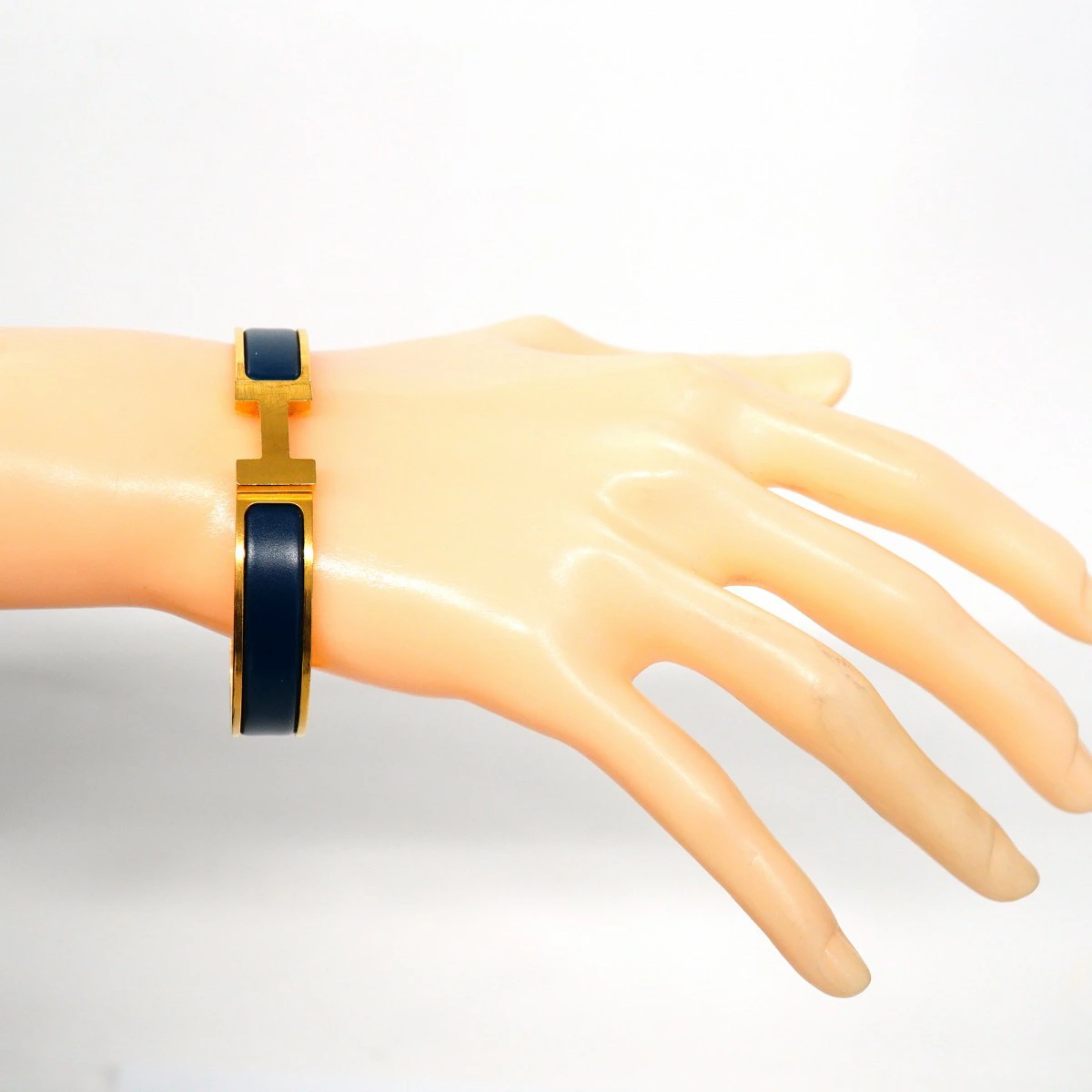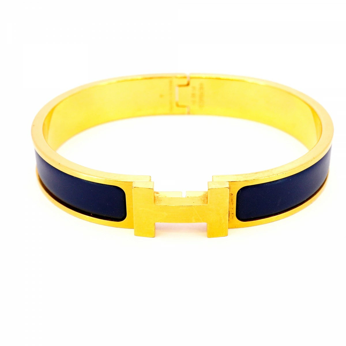 【5jmb0500】エルメス バングル クリッククラックPM GPメッキ ゴールド ブルー【中古】レディース