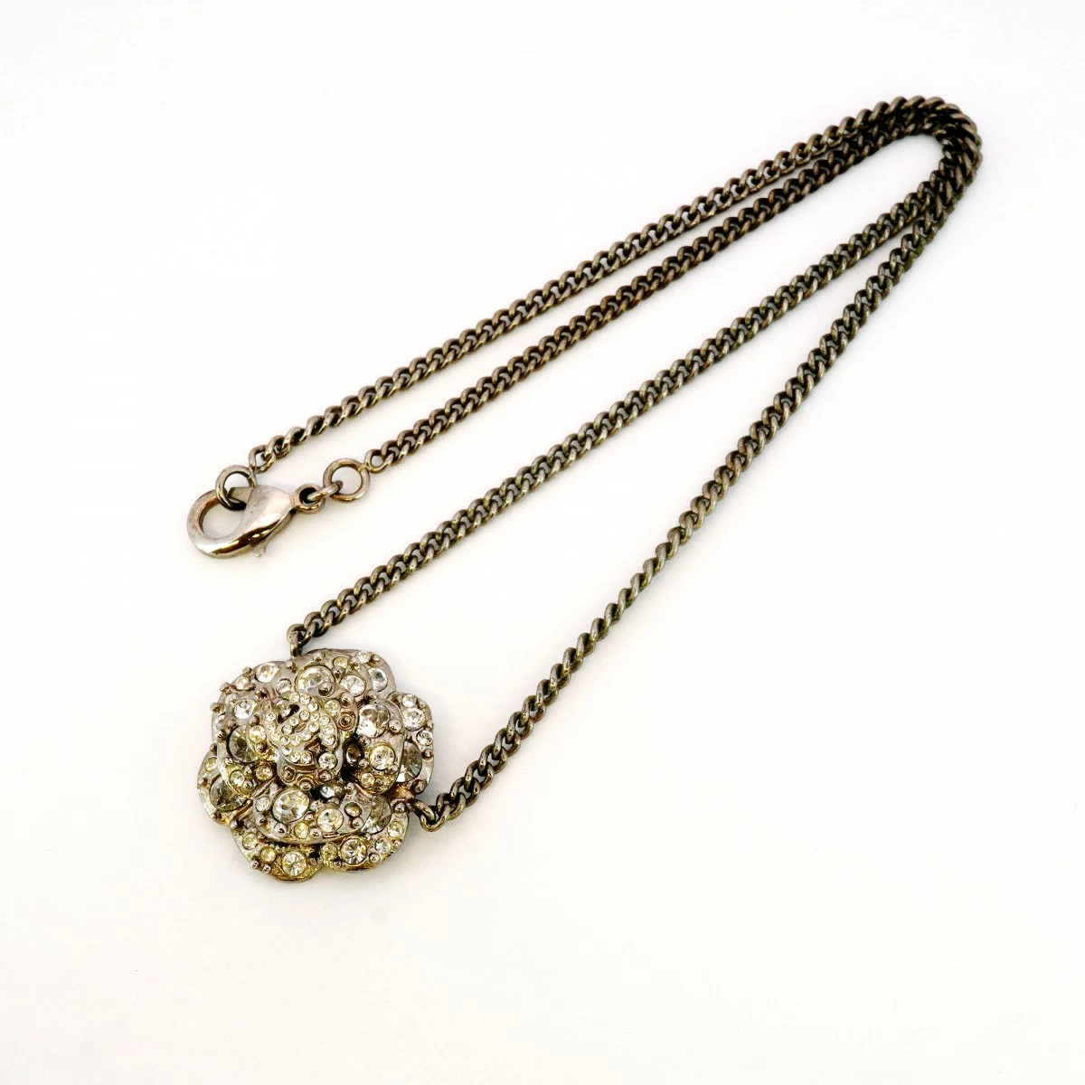 【5jmb0511】シャネル ネックレス ココマーク カメリア メタル ラインストーン シルバー【中古】レディース
