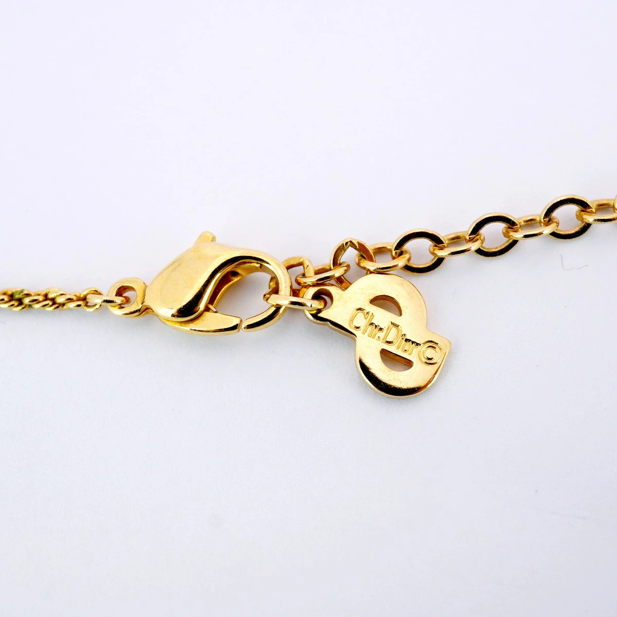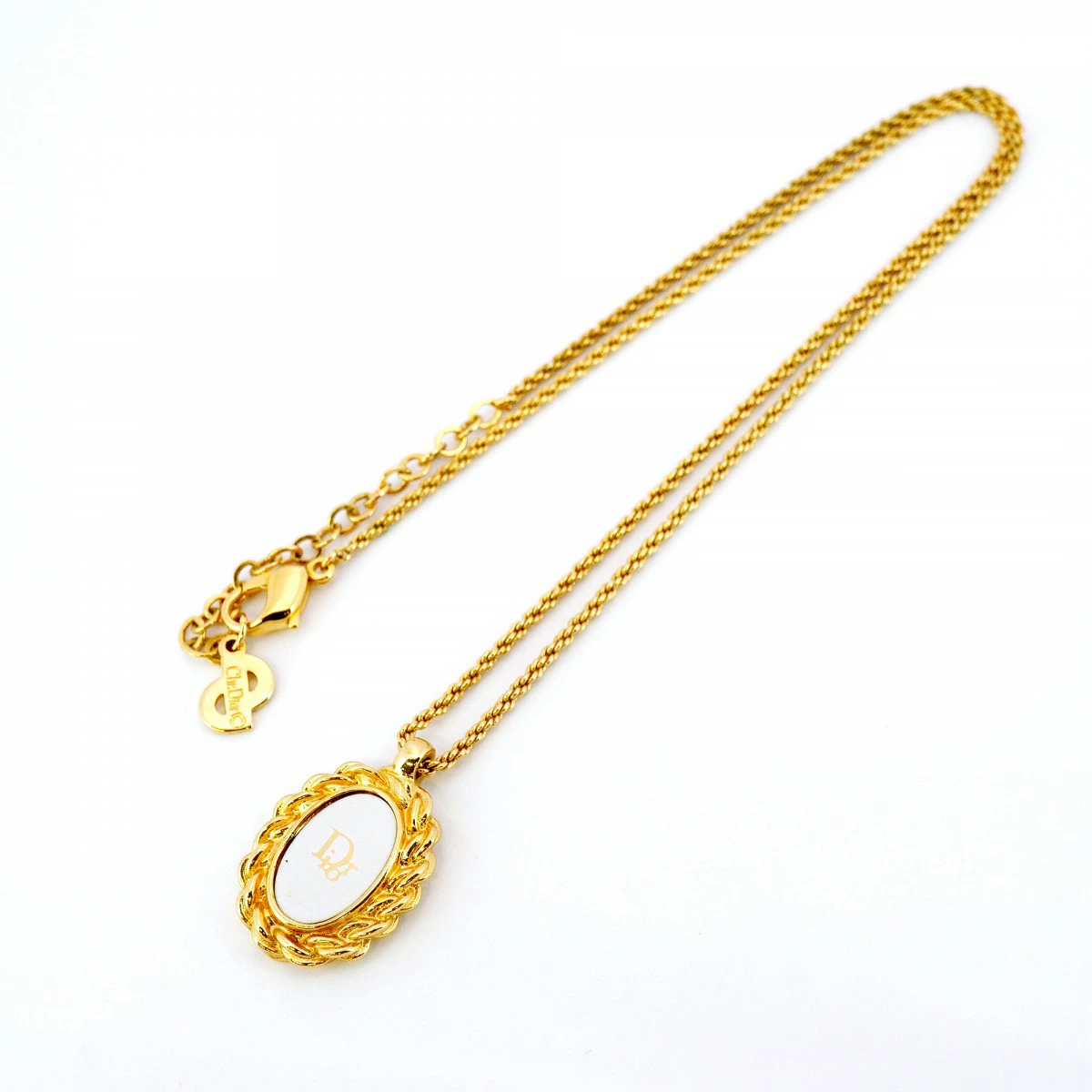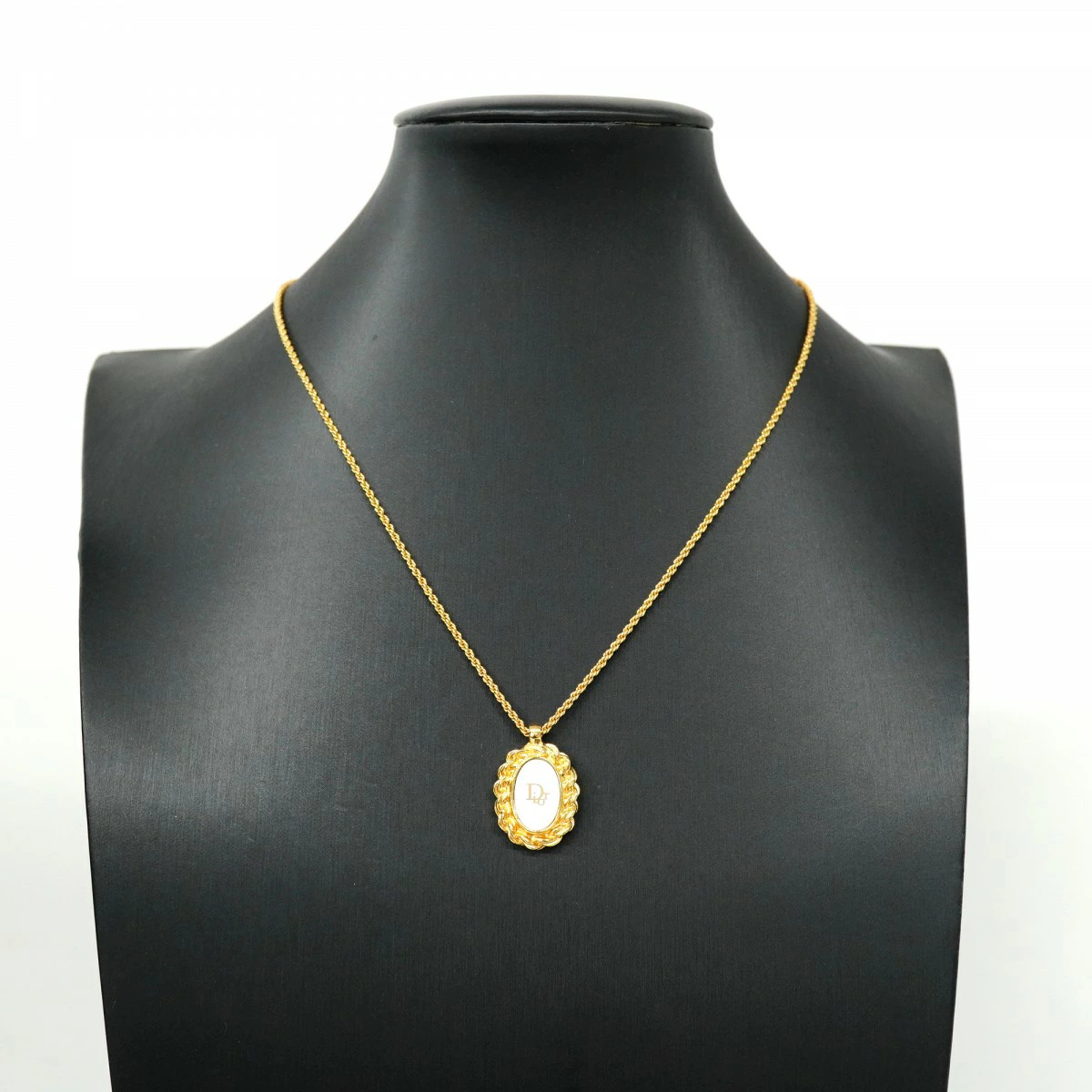 ★SALE【5jmb0516】クリスチャンディオール ネックレス ディオールロゴ オーバル GPメッキ ゴールド ホワイト【中古】レディース