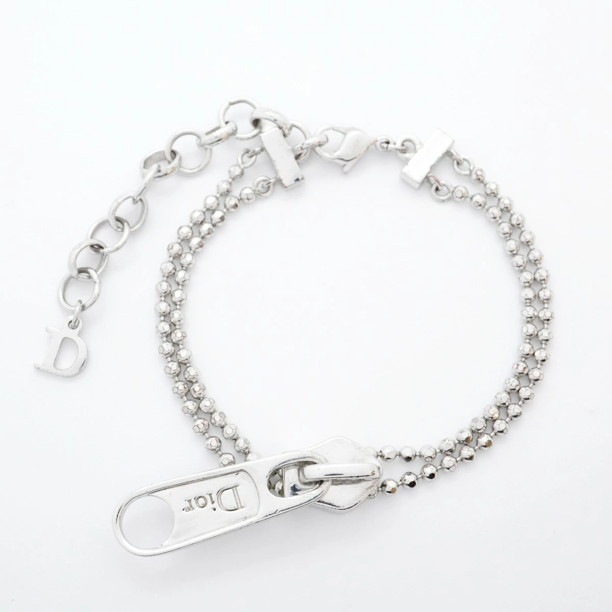 【5jmb0624】クリスチャンディオール ブレスレット ディオールロゴ ファスナーモチーフ メタル シルバー【中古】レディース