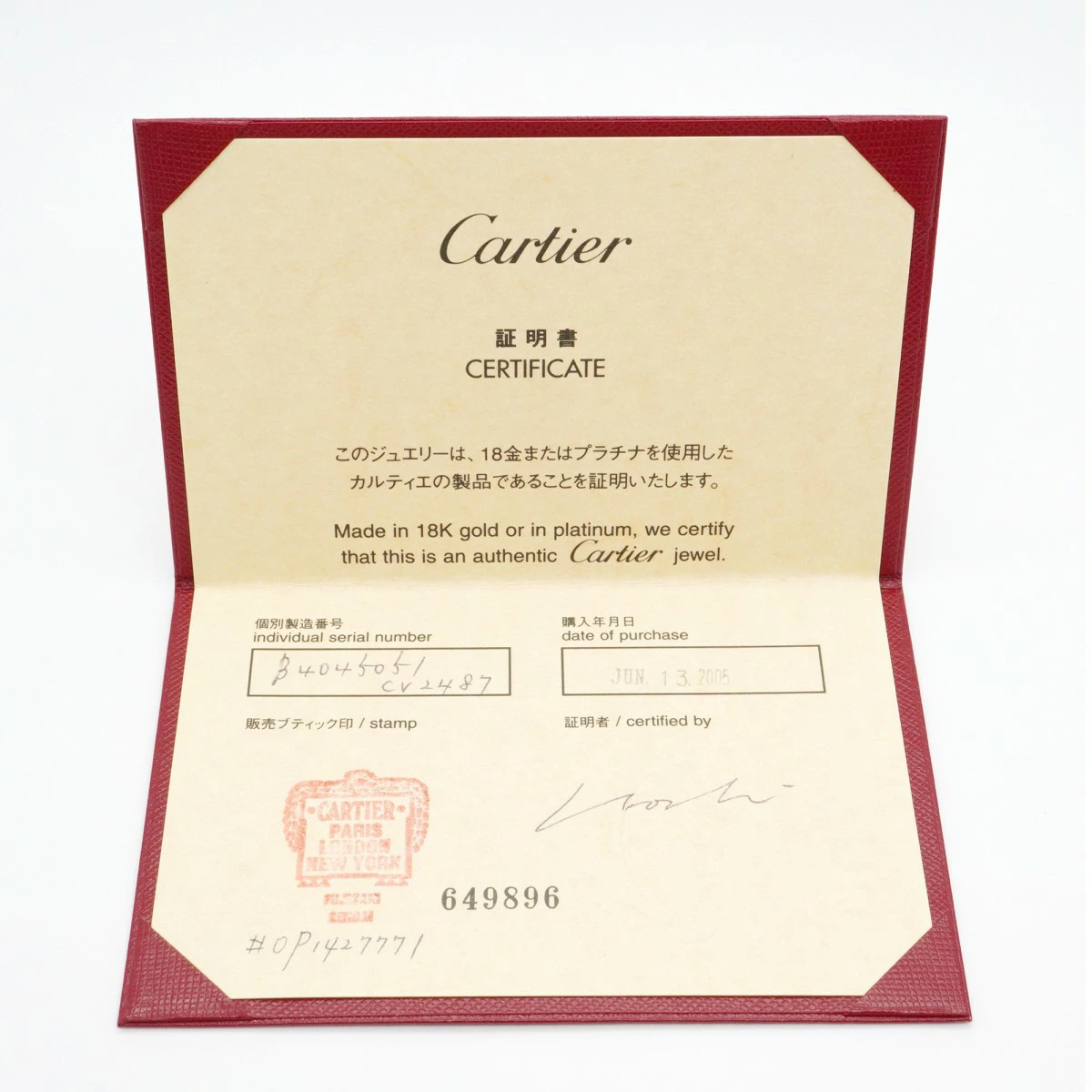 ■付属品:販売証明書