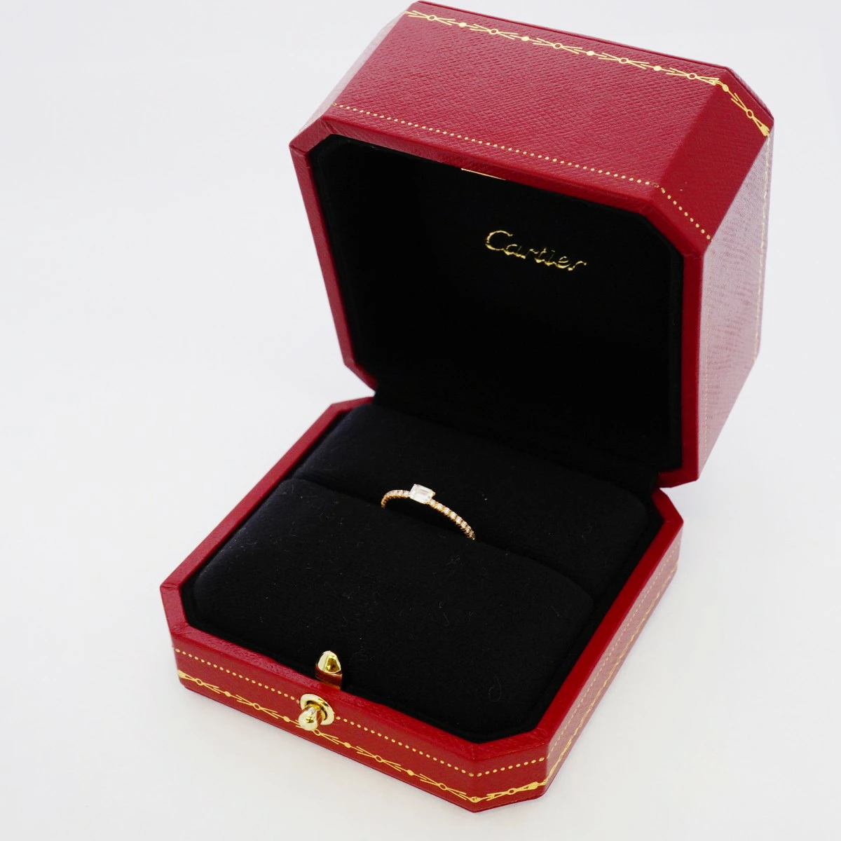 【5jmb0681】カルティエ リング エタンセル エメラルドカット ハーフエタニティ K18PG ピンクゴールド ダイヤモンド #49【中古】レディース